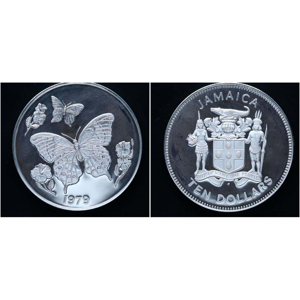 Ямайка 10 Долларов 1979 год. 925 / 42.80 гр. Бабочка. Елизавета II РЕДКАЯ