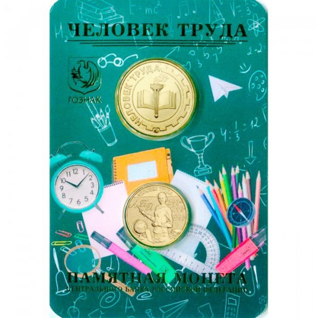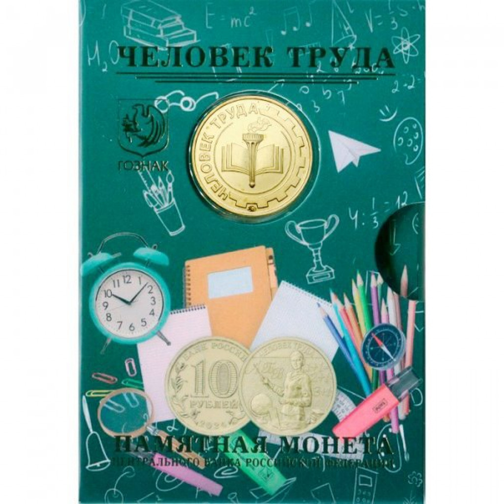 Россия 10 рублей 2024 год Человек труда - Учитель Официальный набор Гознака с жетоном ММД