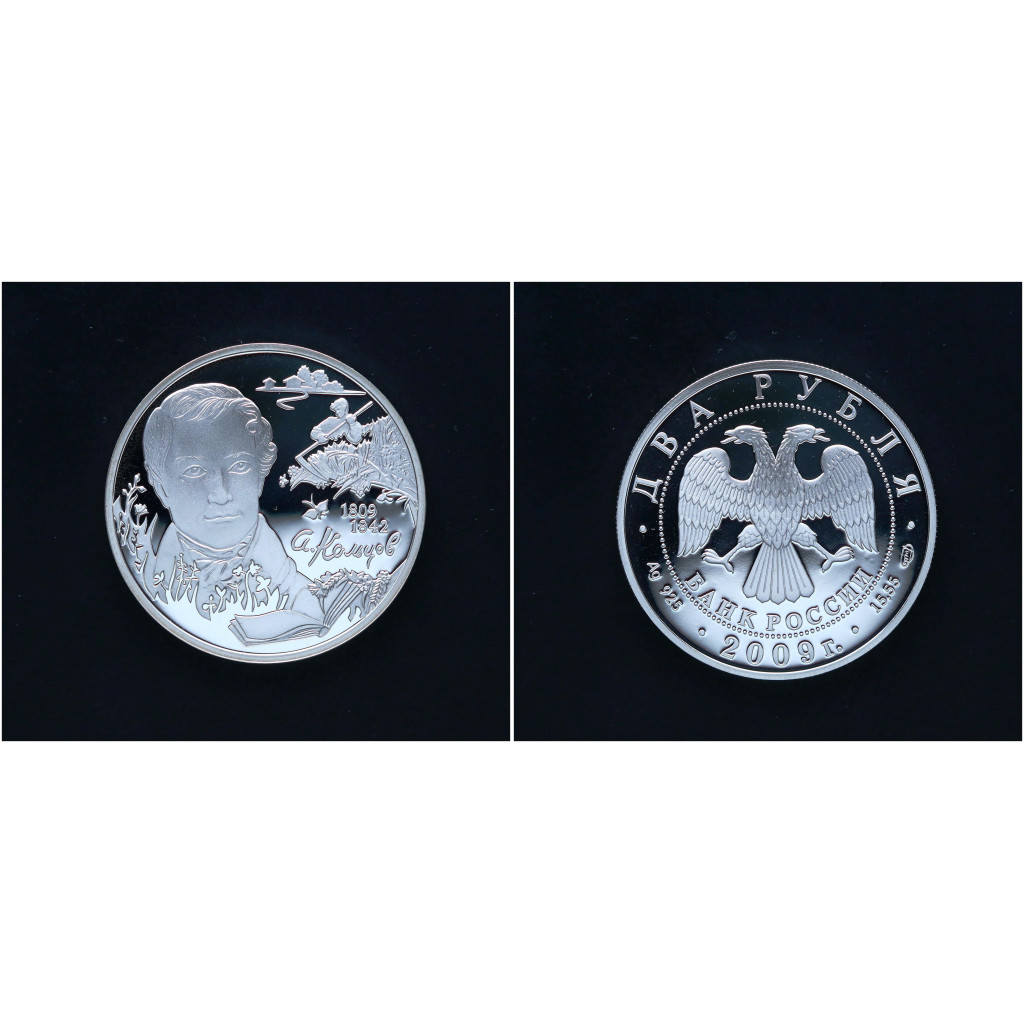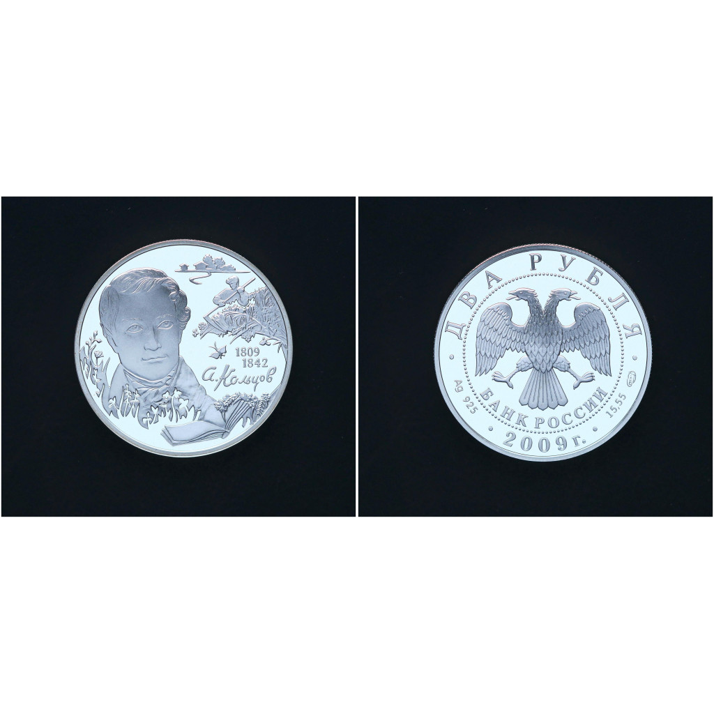 Россия 2 Рубля 2009 СПМД год Серебро 925 / 200 лет со ДР А. Кольцова