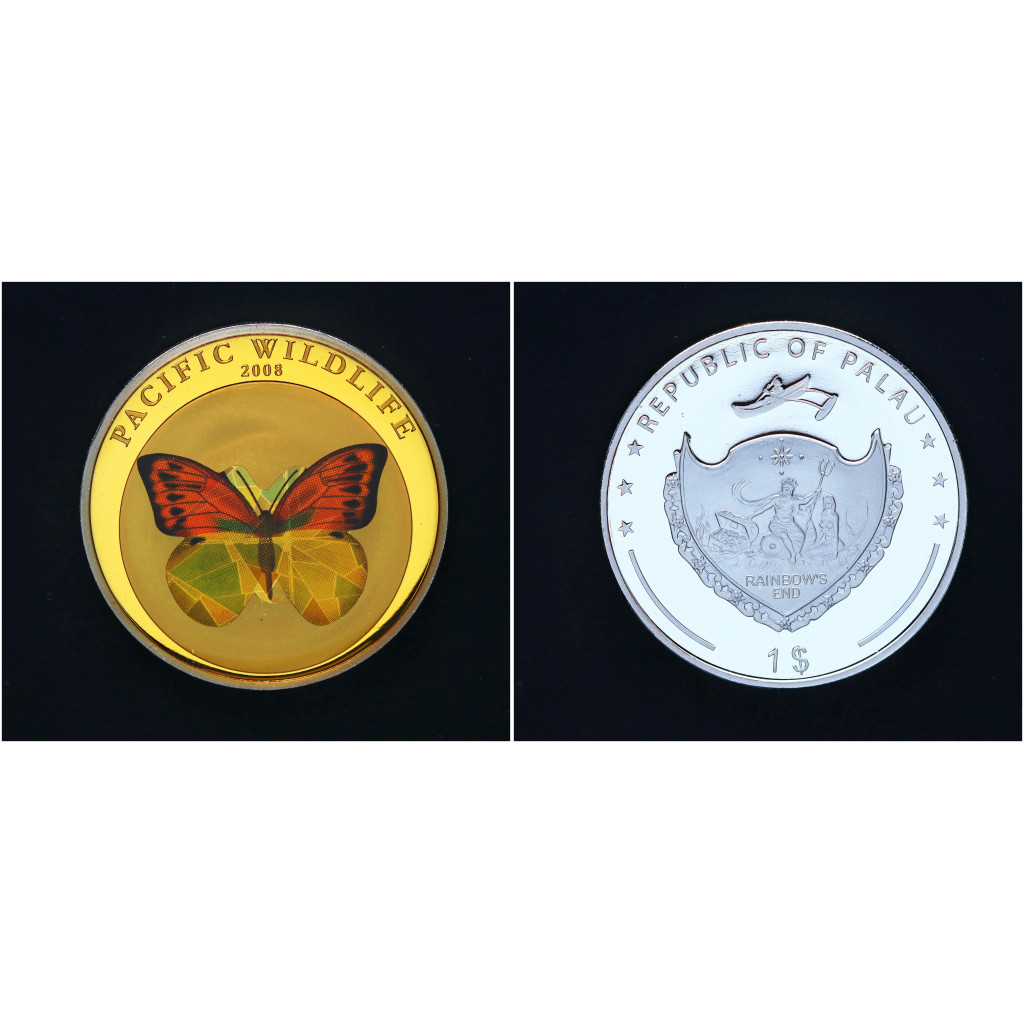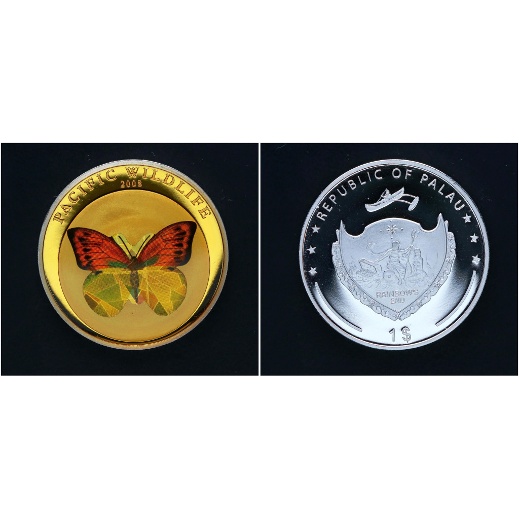 Палау 1 Доллар 2008 год Дикая природа Тихого океана - Бабочка Белянка Пруф / Proof