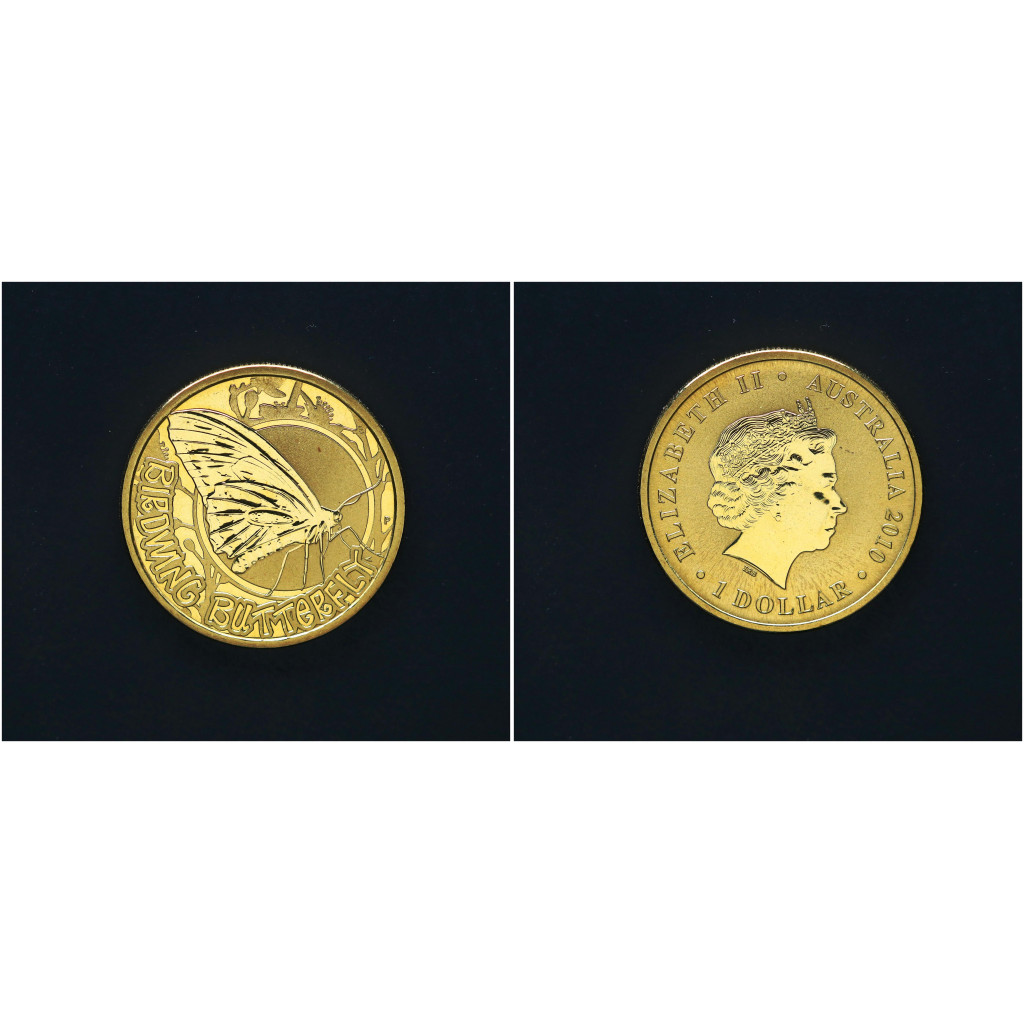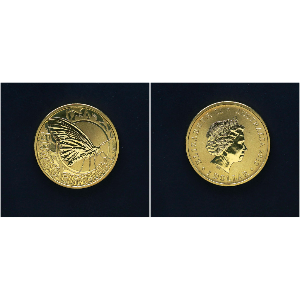 Австралия 1 Доллар 2010 год. Дворовые жуки - Бабочка Птицекрылка. Елизавета II