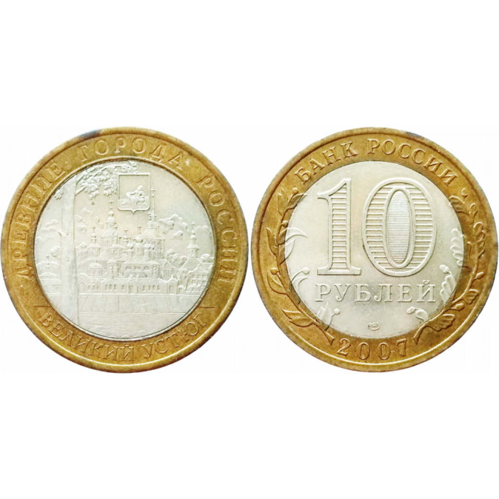 Россия 10 Рублей 2007 СПМД год. Великий Устюг. Древние города России (BOX286)