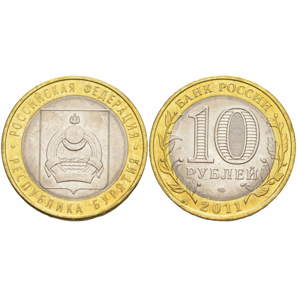 Россия 10 Рублей 2011 СПМД год. UNC Y# 1292. Республика Бурятия. Российская Федерация (BOX193)