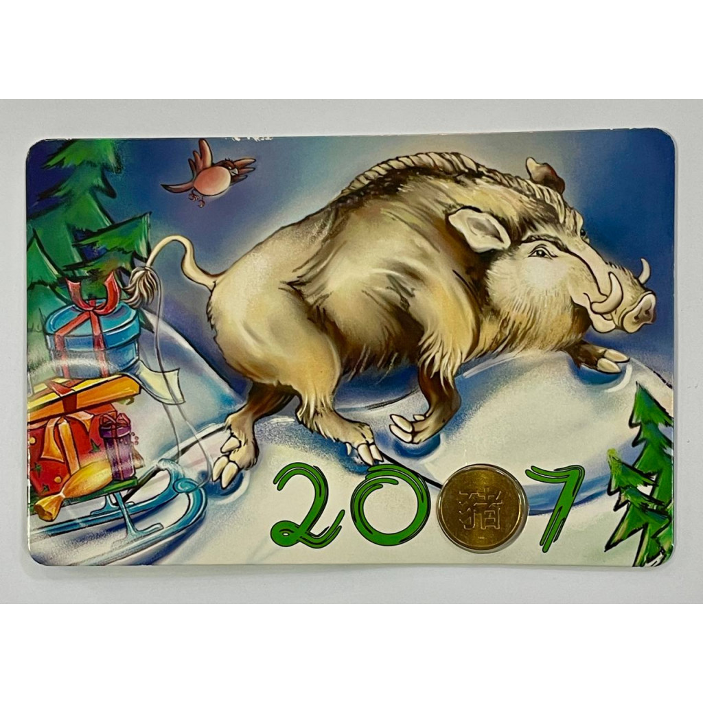 Открытка - Календарь с жетоном год Кабана 2007 год. СПМД Гознак (BOX)
