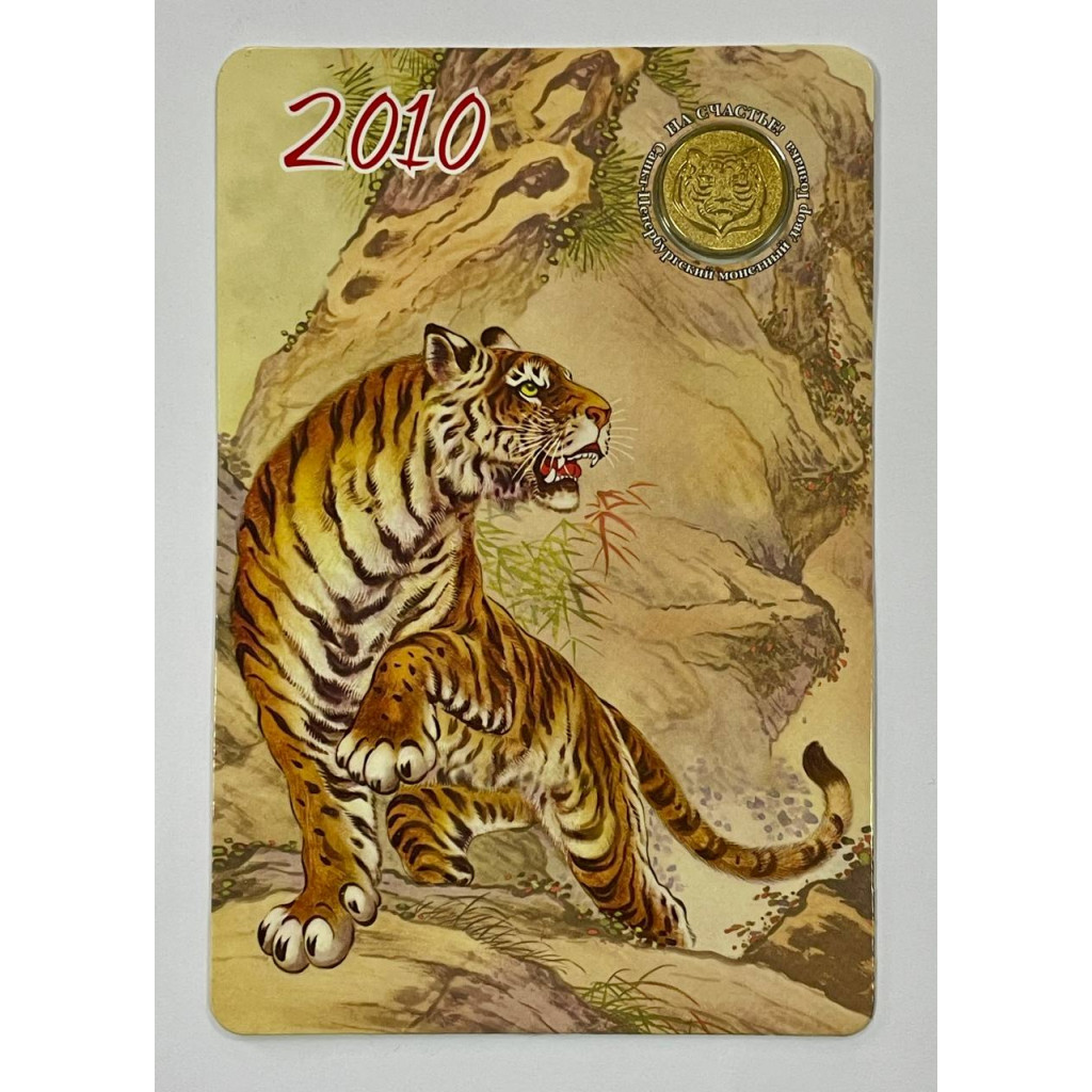 Открытка - Календарь с жетоном год Тигра 2010 год. СПМД Гознак (BOX)