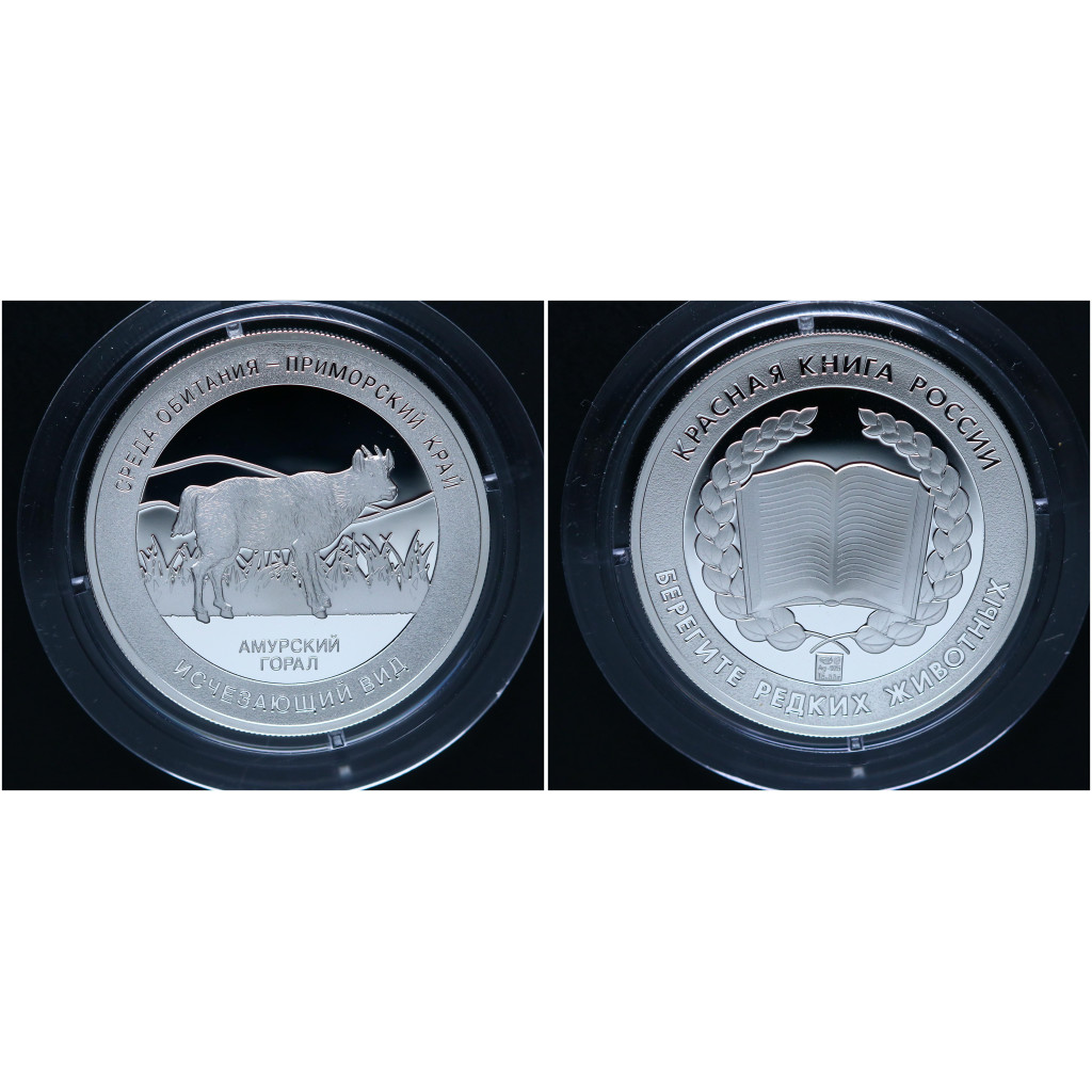 Россия Медаль Амурский Горал Красная книга СПМД Гознак / Ag-925 - 15,55 гр.