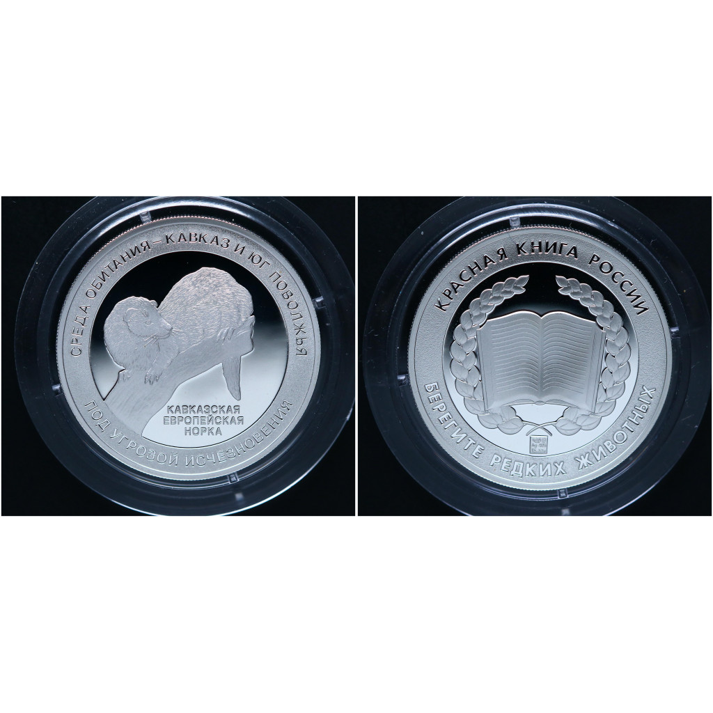 Россия Медаль Кавказская европейская норка Красная книга СПМД Гознак / Ag-925 - 15,55 гр.