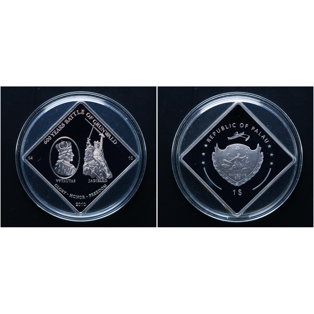 Палау 1 Доллар 2010 год Витовт и Ягайло 600 лет Грюнвальдской битве. Серебрение Пруф / Proof