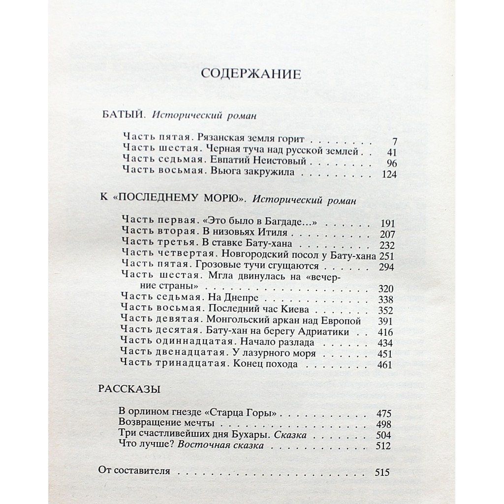 Том 3 - трилогия об ордынском нашествии XII века - исторические романы (Батый 5-8 части, К последнему морю); рассказы (В орлином гнезде Старца горы, Возвращение мечты), сказки (Что лучше?, Три счастливейших дня Бухары).