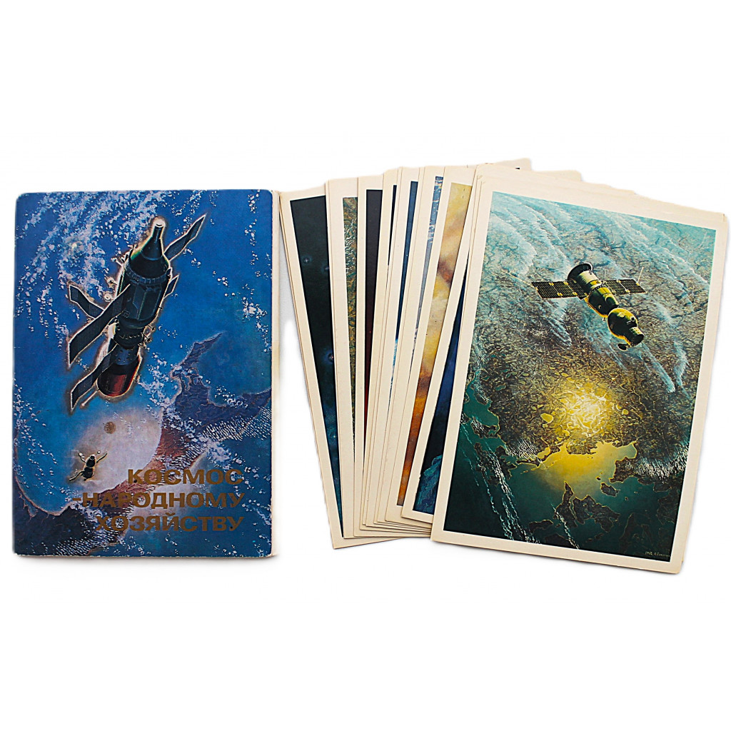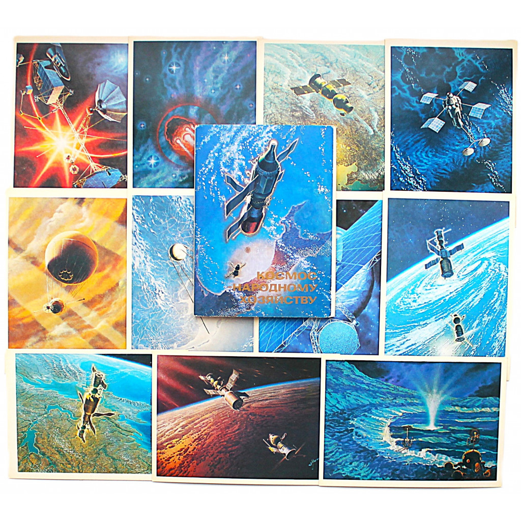 СССР набор открыток "Космос - народному хозяйству". Полный комплект из 16 штук (1985 год)