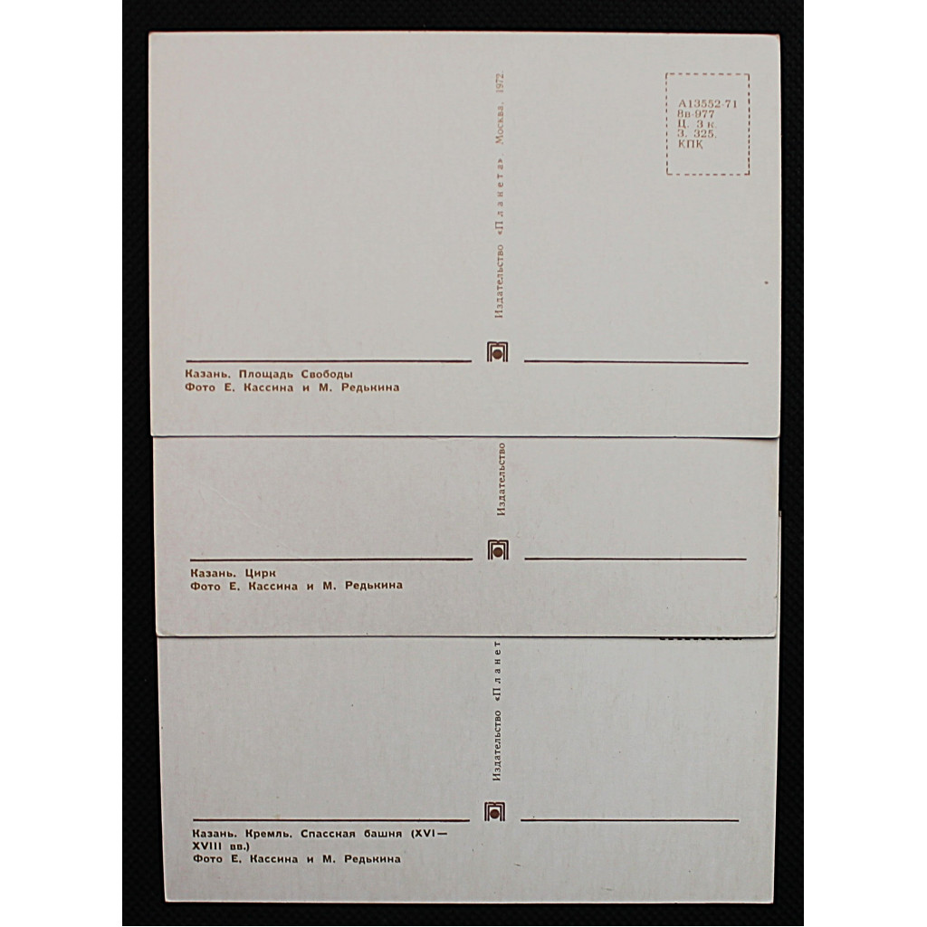 СССР комплект из 3 открыток "КАЗАНЬ" (1972 год) Цирк. Спасская башня Кремля. Площадь Свободы