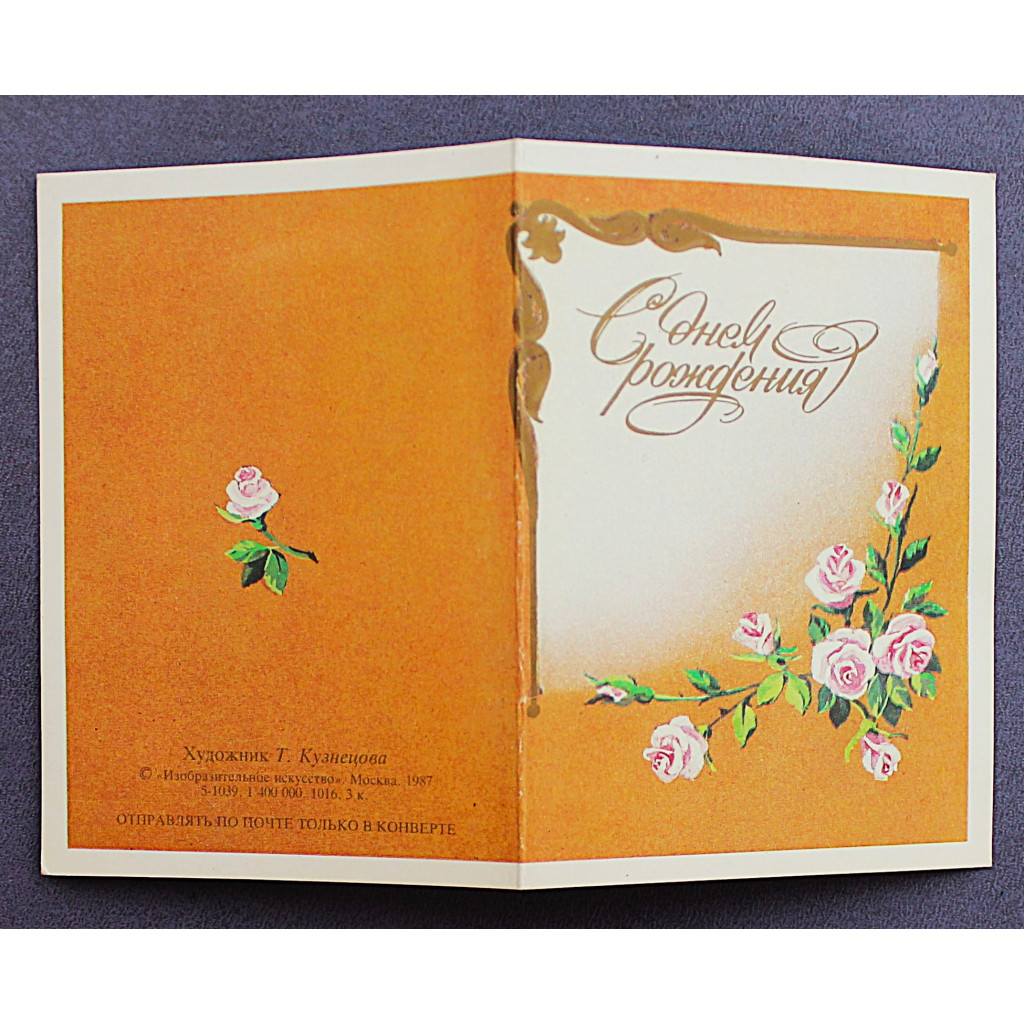 СССР мини открытка двойная "С днем рождения" (Изобразительное искусство, 1987) Т. Кузнецова. Чистая