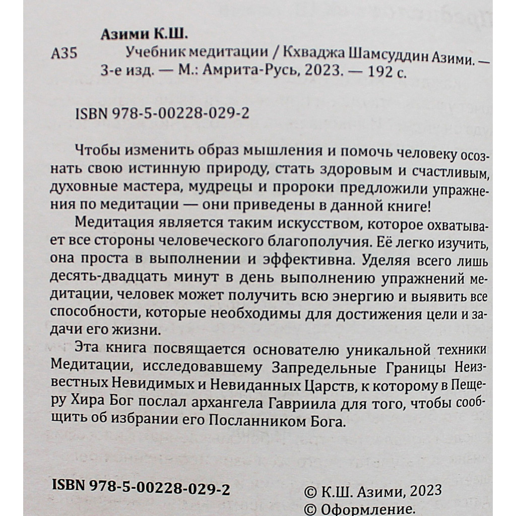 Чтобы изменить образ мышления и помочь человеку осознать свою истинную природу, стать здоровым и счастливым, духовные мастера, мудрецы и пророки предложили упражнения по медитации - они приведены в данной книге! Медитация является таким искусством, которое охватывает все стороны человеческого благополучия. Её легко изучить, она проста в выполнении и эффективна. Уделяя всего лишь десять-двадцать минут в день выполнению упражнений медитации, человек может получить всю энергию и выявить все способности, которые необходимы для достижения цели и задачи его жизни. Эта книга посвящается основателю уникальной техники Медитации, исследовавшему Запредельные Границы Неизвестных Невидимых и Невиданных Царств, к которому в Пещеру Хира Бог послал архангела Гавриила для того, чтобы сообщить об избрании его Посланником Бога.