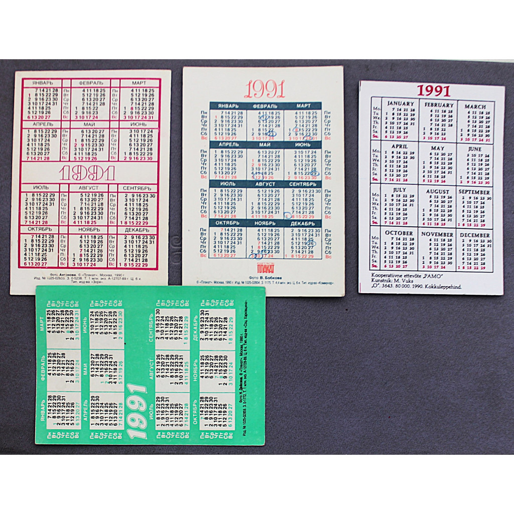 СССР подборка из 4 карманных календарей за 1991 год с животными