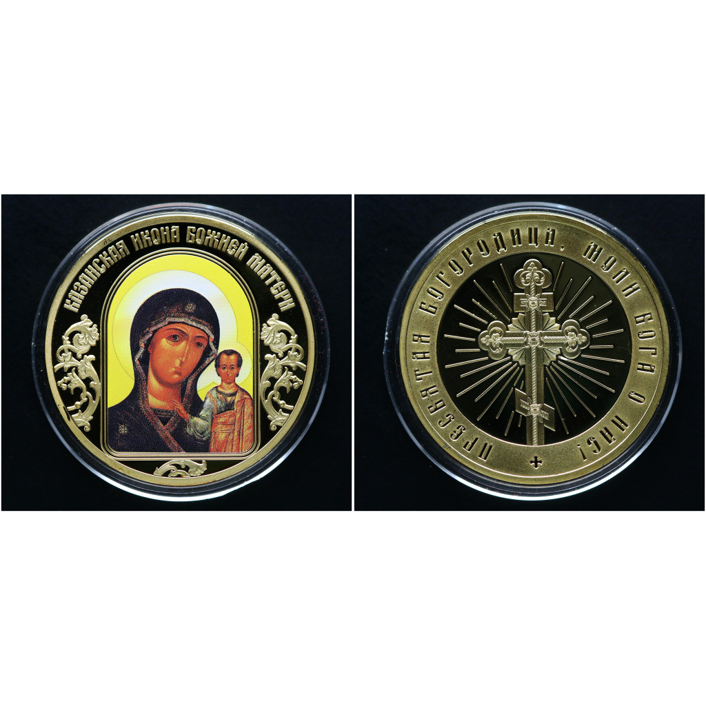 Россия ИМД Памятная Медаль Казанская Икона Божией Матери 31 гр. / Ø 40 мм. Позолота Цветная