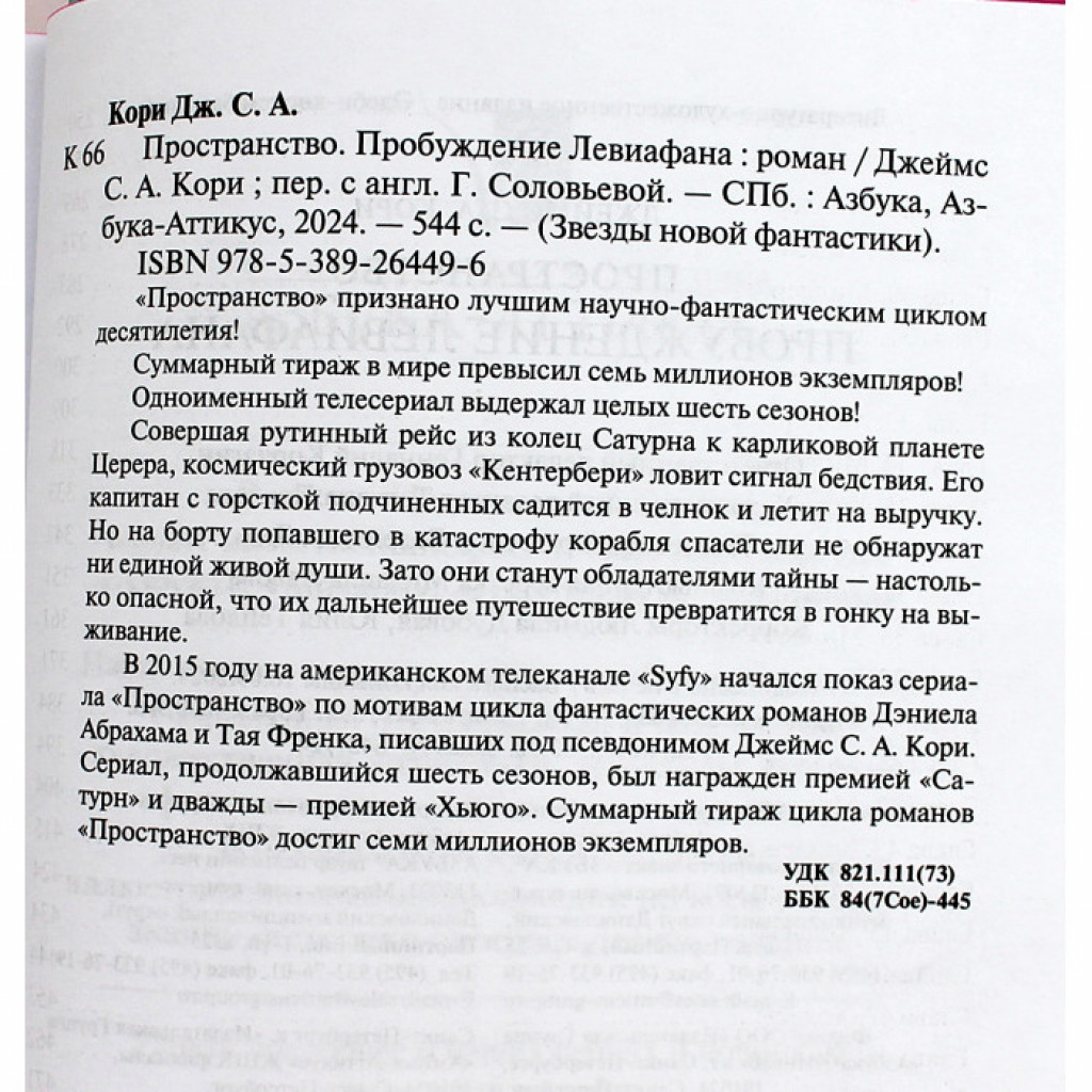 В 2015 году на американском телеканале «Syfy» начался показ сериала «Пространство» по мотивам цикла фантастических романов Дэниела Абрахама и Тая Френка, писавших под псевдонимом Джеймс С. А. Кори. Сериал, продолжавшийся шесть сезонов, был награжден премией «Сатурн» и дважды — премией «Хьюго». Суммарный тираж цикла романов «Пространство» достиг семи миллионов экземпляров.