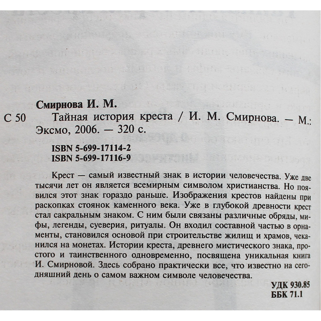 Крест - самый известный знак в истории человечества. Уже две тысячи лет он является всемирным символом христианства. Но появился этот знак гораздо раньше. Изображения крестов найдены при раскопках стоянок каменного века. Уже в глубокой древности крест стал сакральным знаком. С ним были связаны различные обряды, мифы, легенды, суеверия, ритуалы. Он входил составной частью в орнаменты, становился основой при строительстве жилищ и храмов, чеканился на монетах. Истории креста, древнего мистического знака, простого и таинственного одновременно, посвящена уникальная книга И.Смирновой. Здесь собрано практически все, что известно на сегодняшний день о самом важном символе человечества.