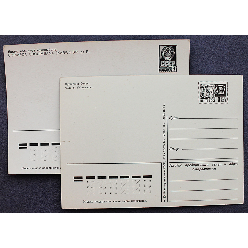 СССР пара почтовых открыток "ЦВЕТЫ". Кувшинка белая. Кактус (Мин связи, 1975-1985) Чистые