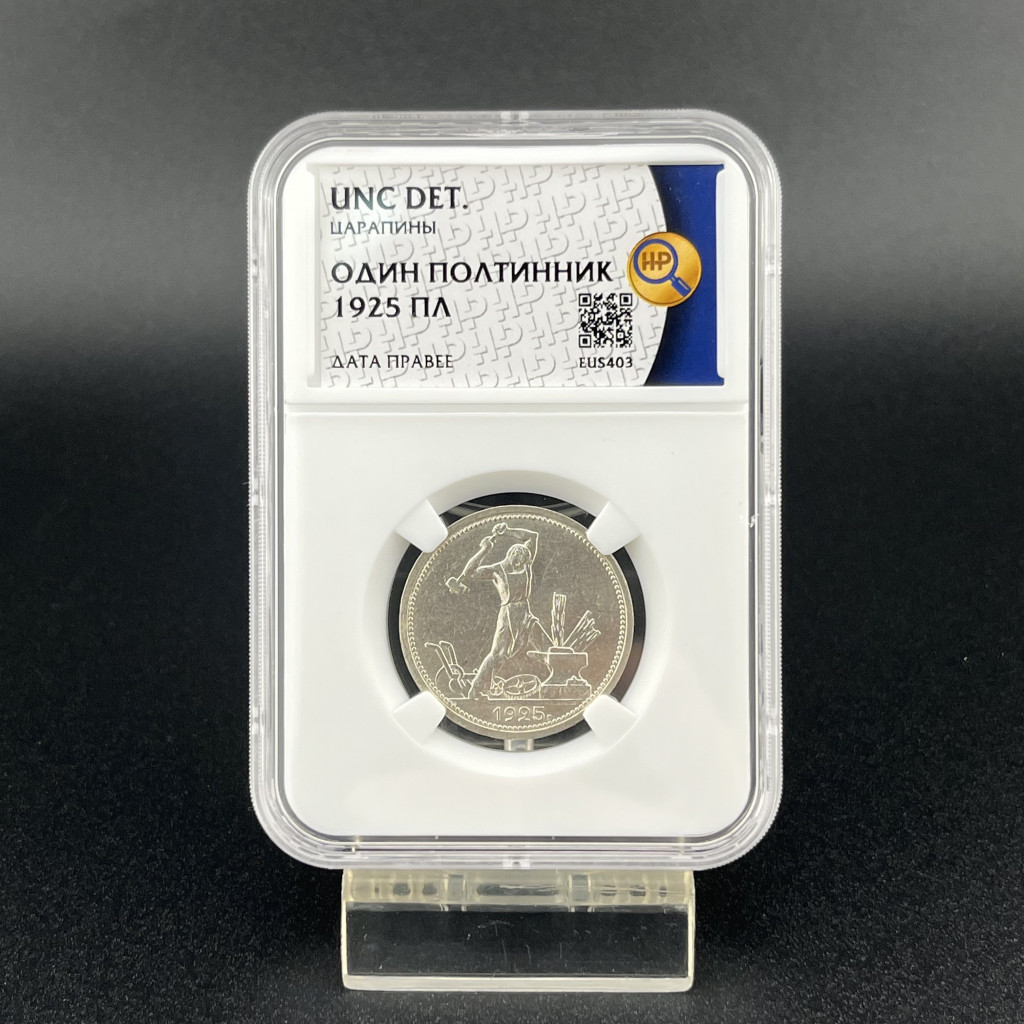 СССР Один Полтинник / 50 Копеек 1925 ПЛ год. Ag. UNC DET. Слаб ННР. Дата правее