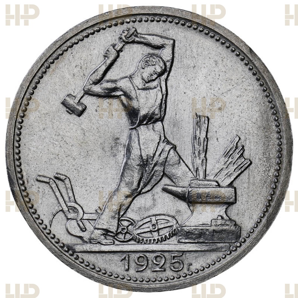 СССР Один Полтинник / 50 Копеек 1925 ПЛ год. Ag. UNC DET. Слаб ННР. Дата правее
