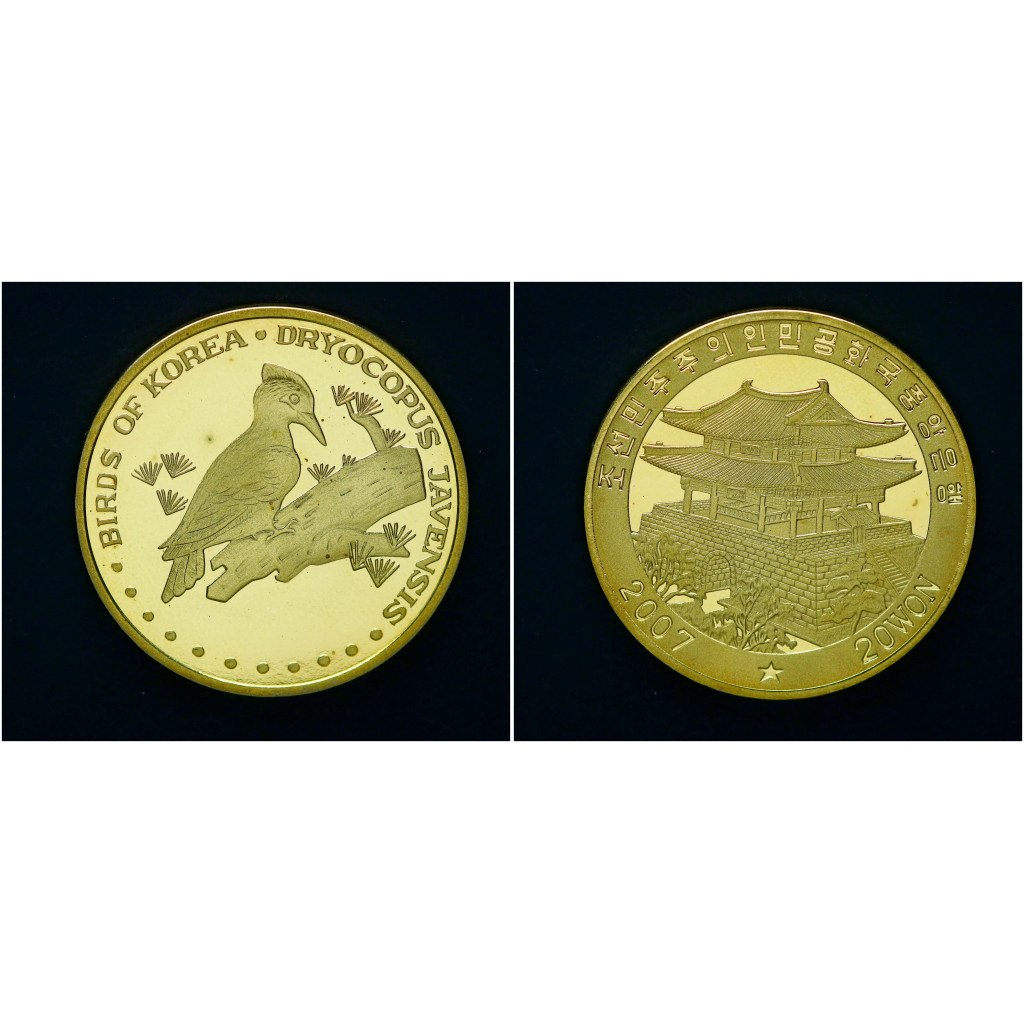 Северная Корея 20 Вон 2007 год Белобрюхая желна Птица