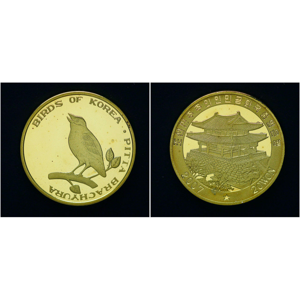 Северная Корея 20 Вон 2007 год Синекрылая питта Птица