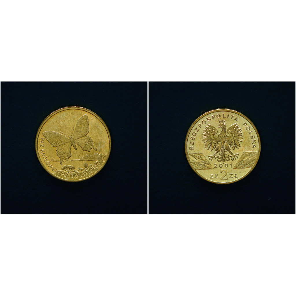Польша 2 Злотых 2001 год Бабочка-Махаон