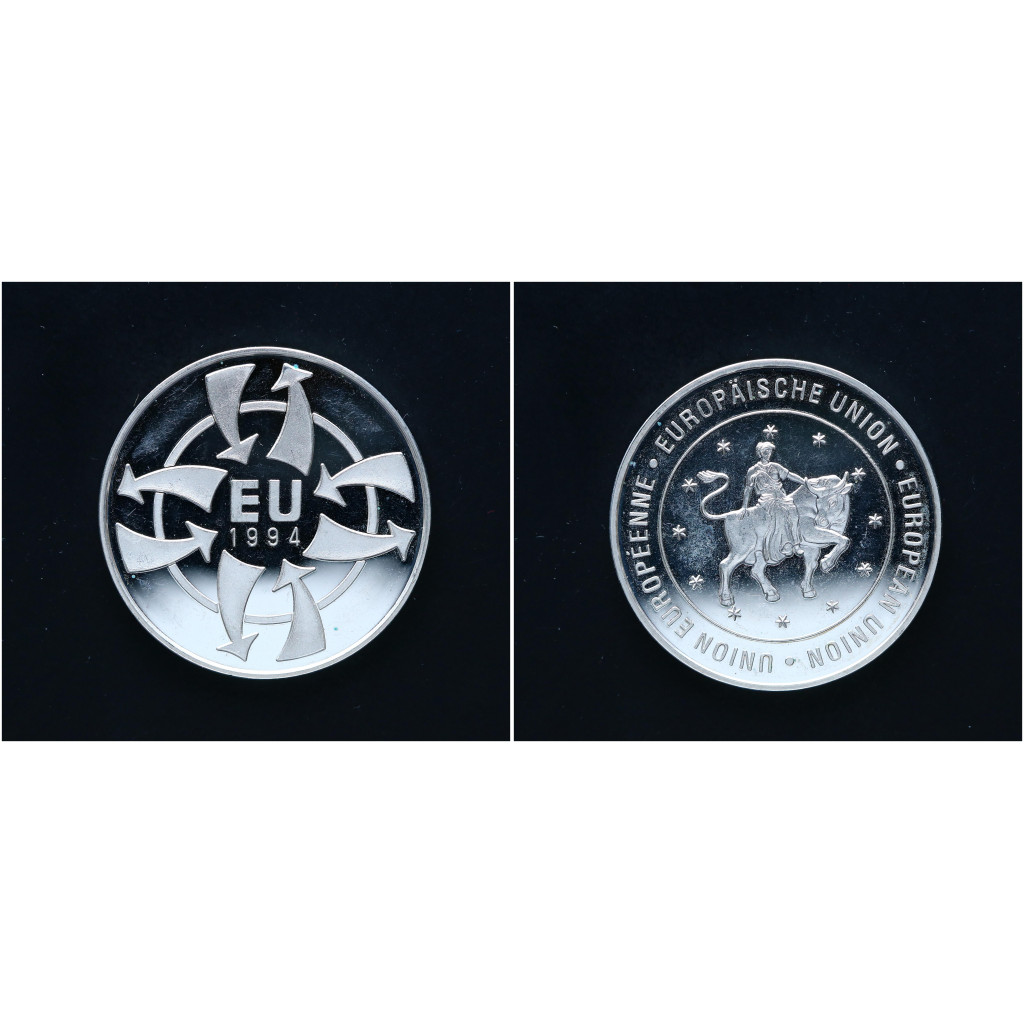 Германия настольная Медаль Европейский союз 1994 год Серебро 925 / 15 гр. Пруф / Proof