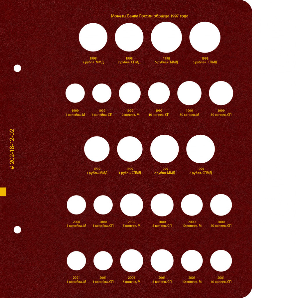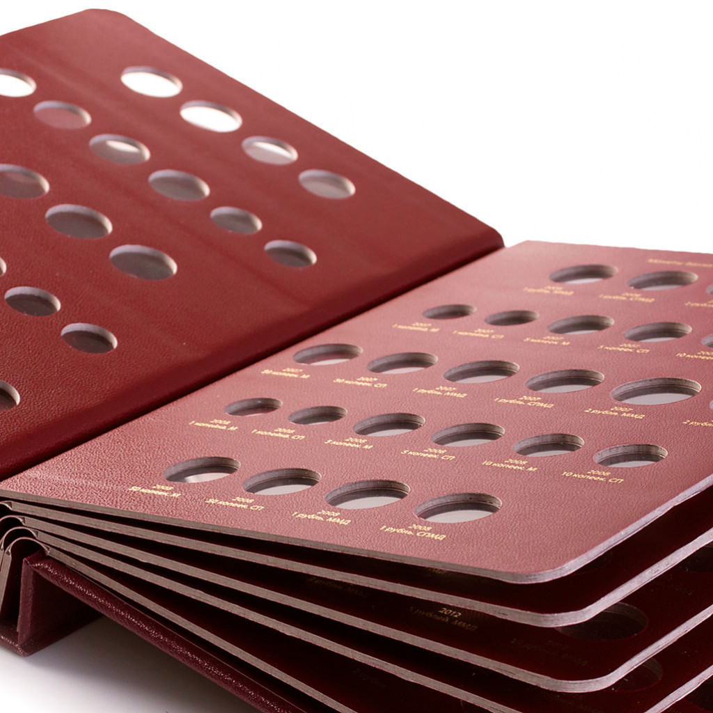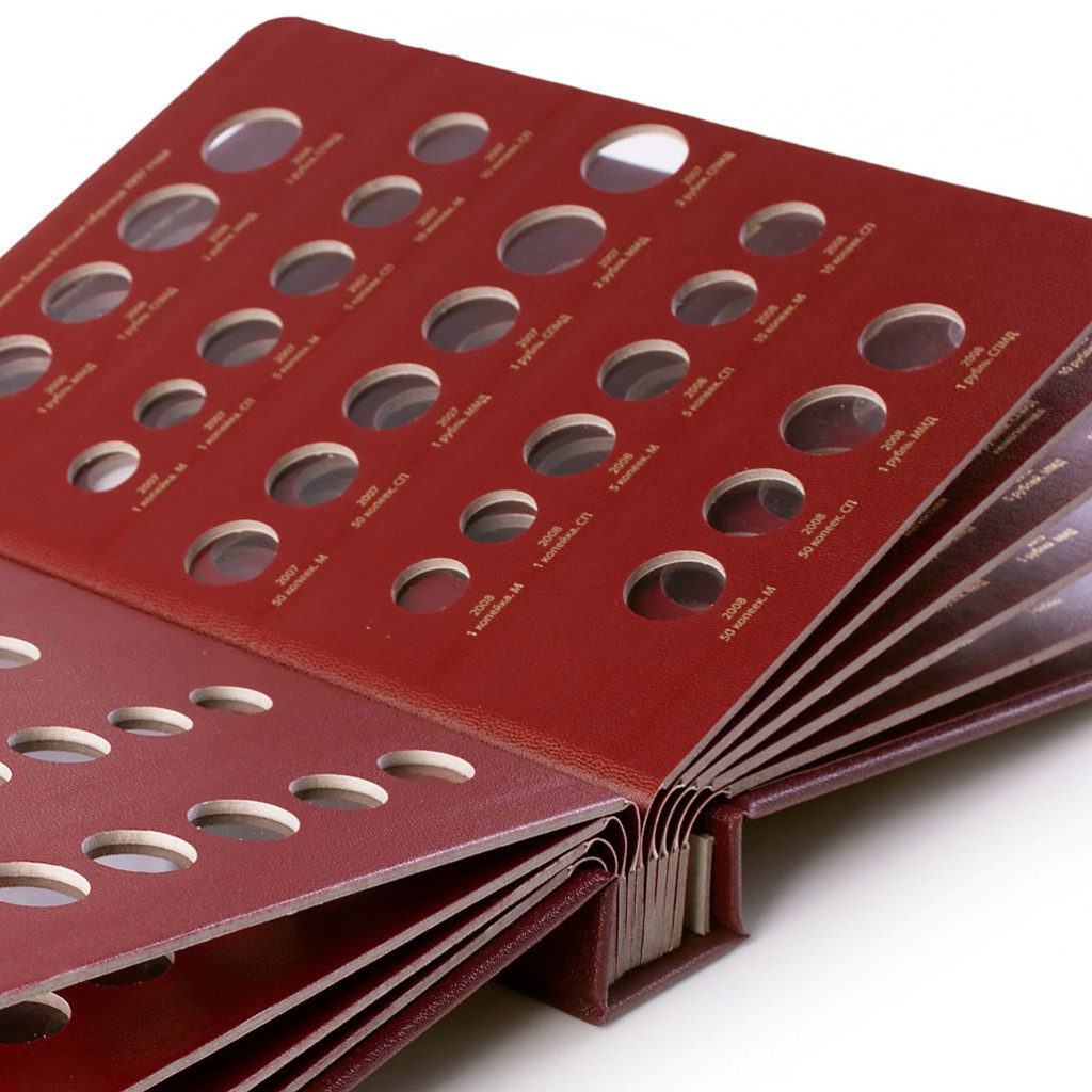 Вместительный альбом для коллекции всех монет России регулярного выпуска с 1997 по настоящее время. Первый том состоит из 11 листов (последний лист накопительный - для хранения вновь выходящих монет), с возможностью дополнить его 2-мя листами, по мере выпуска новых монет.