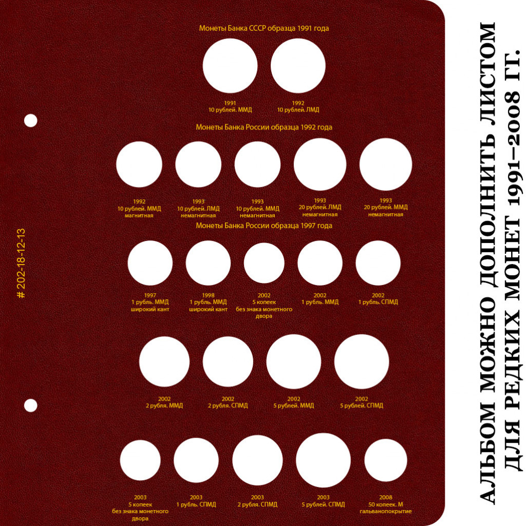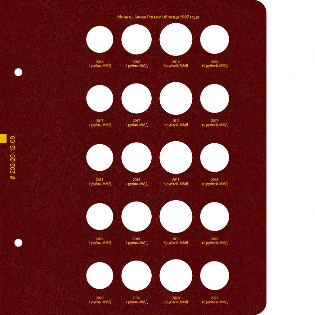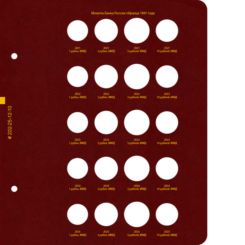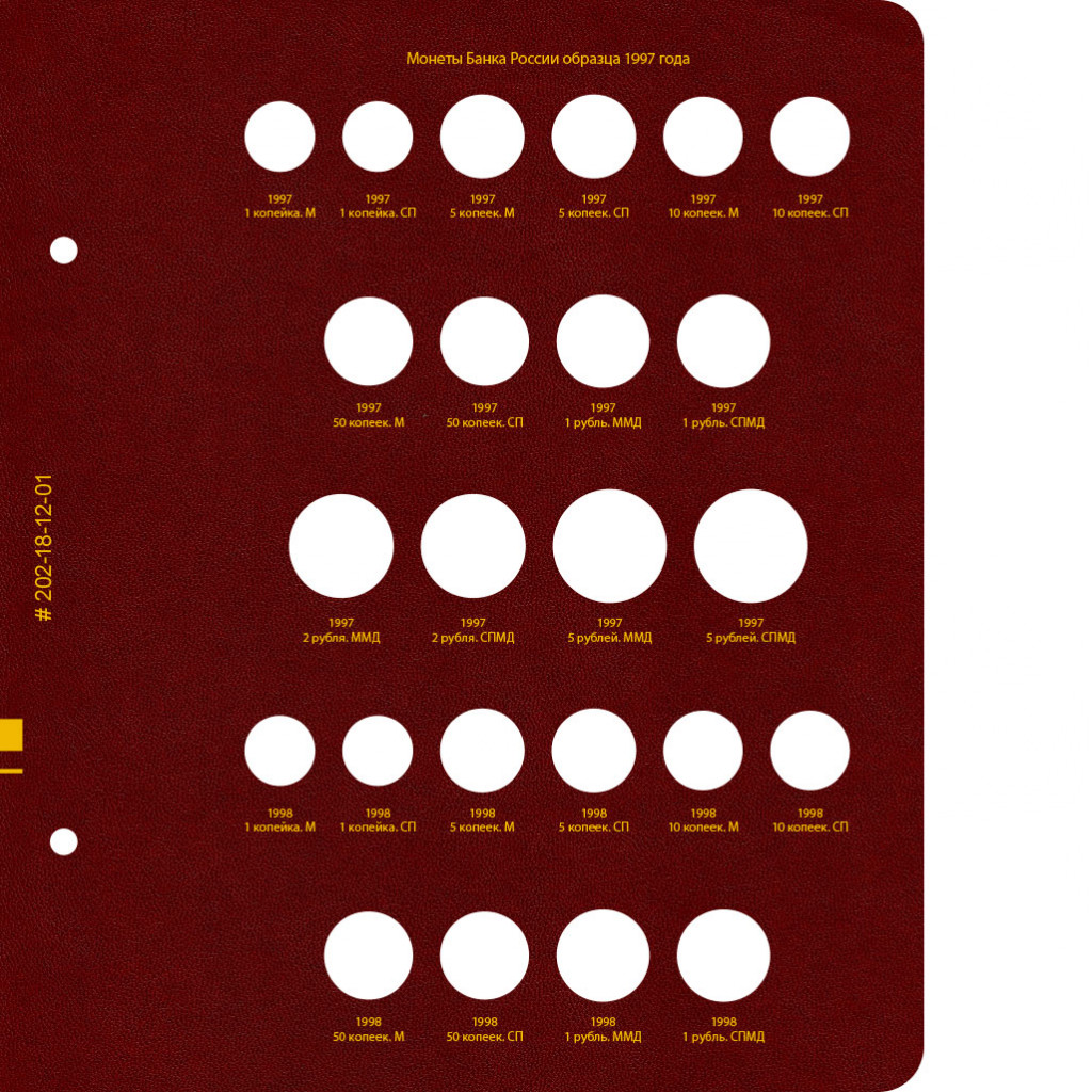 Вместительный альбом для коллекции всех монет России регулярного выпуска с 1997 по настоящее время. Первый том состоит из 11 листов (последний лист накопительный - для хранения вновь выходящих монет), с возможностью дополнить его 2-мя листами, по мере выпуска новых монет.