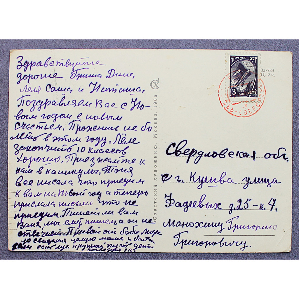 СССР открытка "Поздравляю!". Космос (Сов художник, 1966) Литвинов. Подписана