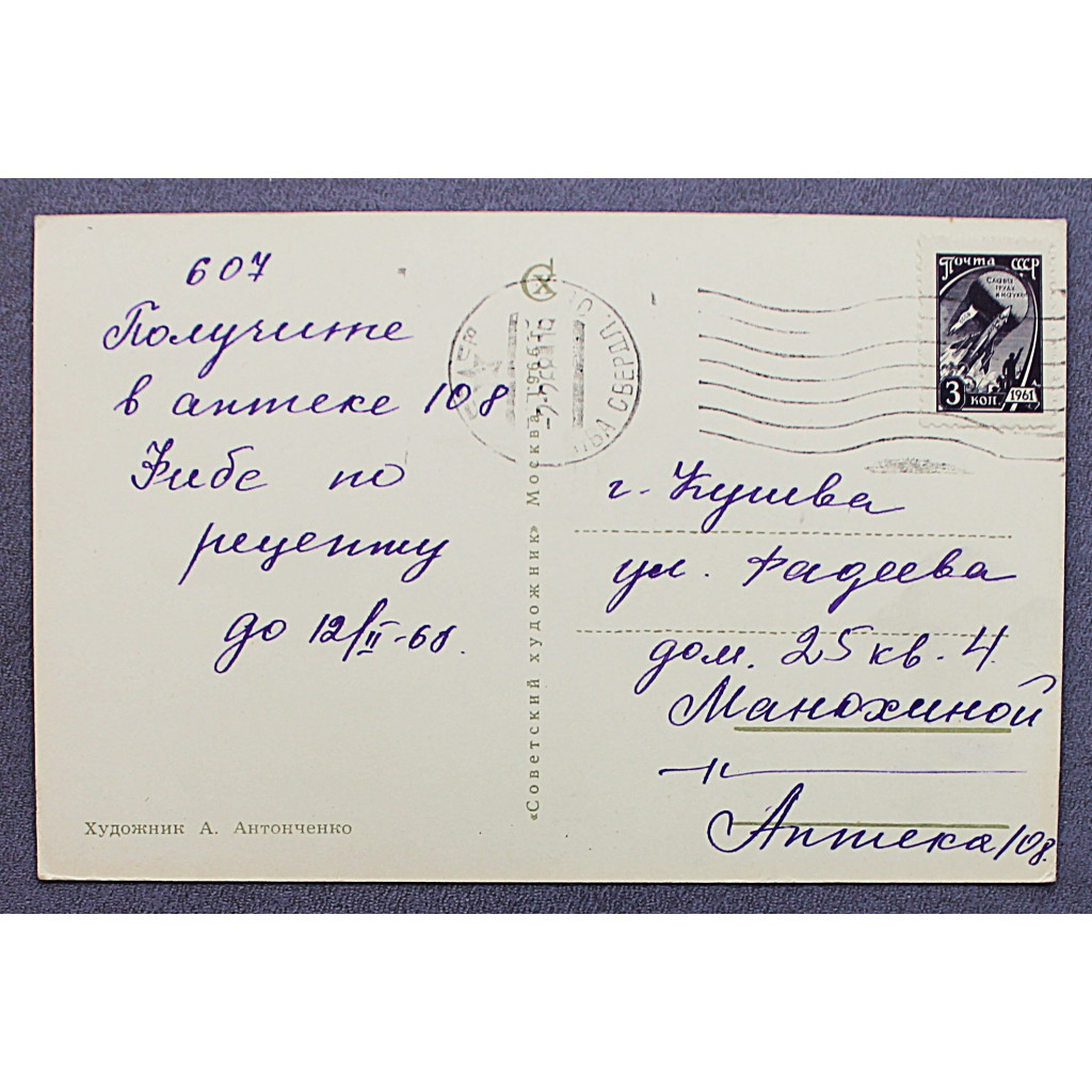 СССР открытка "12 апреля - День космонавтики" (Сов художник, 1966) Антонченко
