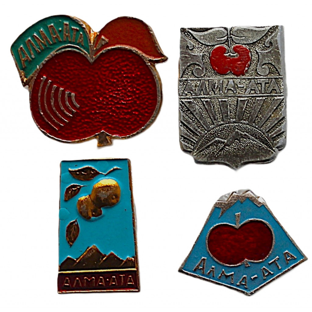 СССР нагрудный знак "Алма-Ата". Яблоко. Комплект из 4 знаков