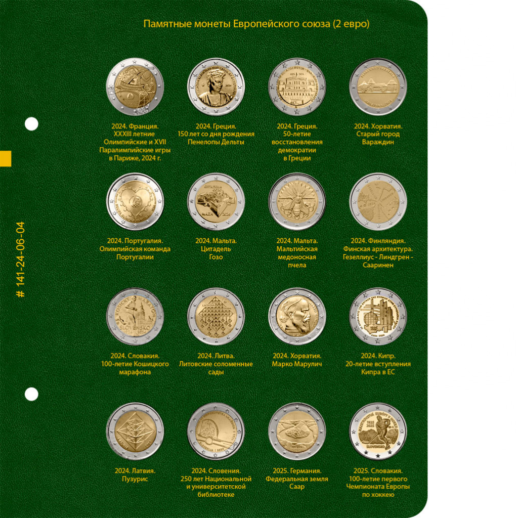 Альбом для хранения коллекции памятных монет Европейского союза номиналом 2 евро с 2022 года.