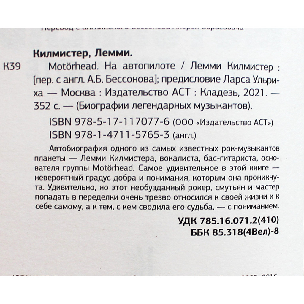 Автобиография одного из самых известных рок-музыкантов планеты — Лемми Килмистера, вокалиста, бас-гитариста, основателя группы Motorhead. Самое удивительное в этой книге — невероятный градус добра и понимания, которым она проникнута. Удивительно, но этот необузданный рокер, смутьян и мастер попадать в переделки очень трезво относился к своей жизни и к себе самому, а к тем, с кем сводила его судьба, — с пониманием.