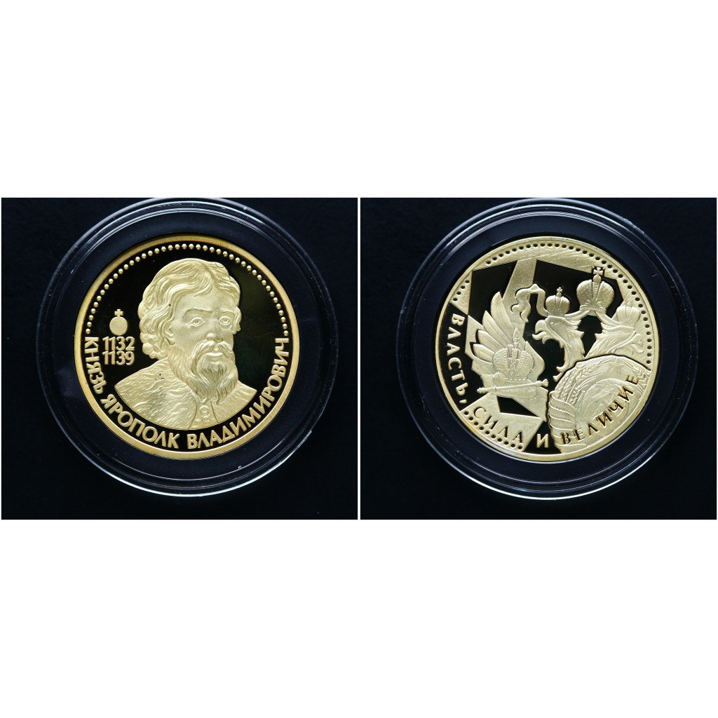 Россия ИМД Памятная Медаль Великие Россияне Князь Ярополк Владимирович 15 гр. / Ø 33 мм. Позолота