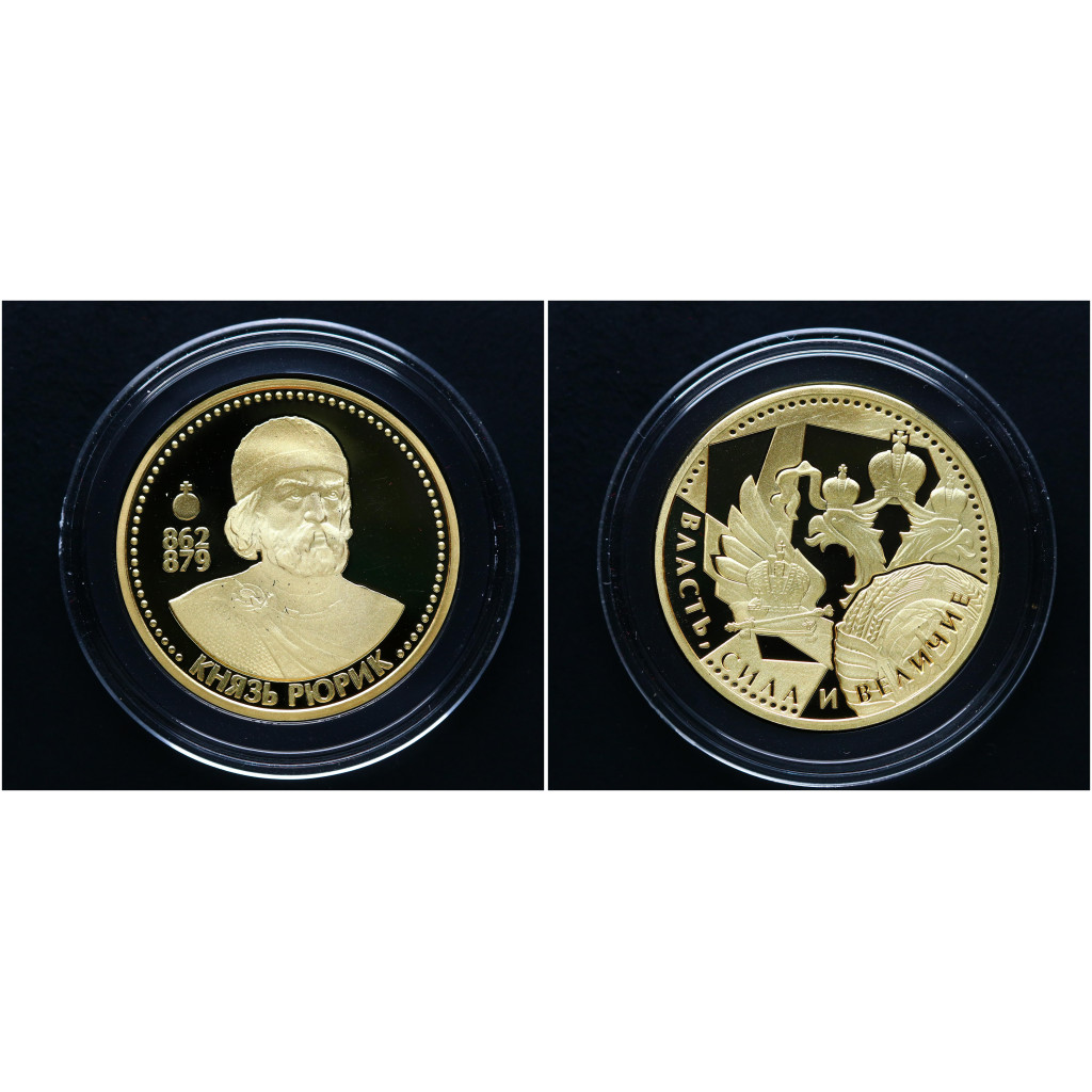 Россия ИМД Памятная Медаль Великие Россияне Князь Рюрик 15 гр. / Ø 33 мм. Позолота