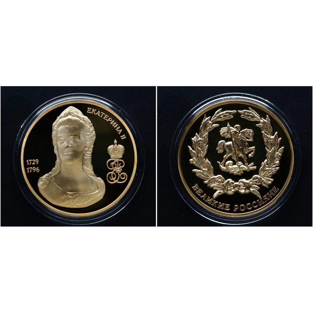 Россия ИМД Памятная Медаль Великие Россияне Екатерина II 26 гр. / Ø 39 мм. Позолота