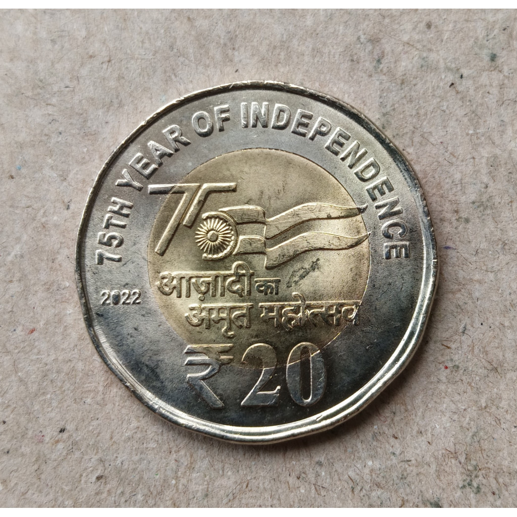 Индия 20 рупий 2022 год , 75 лет независимости , Биметалл