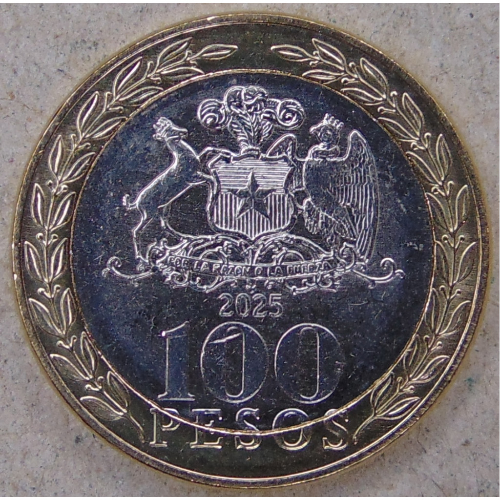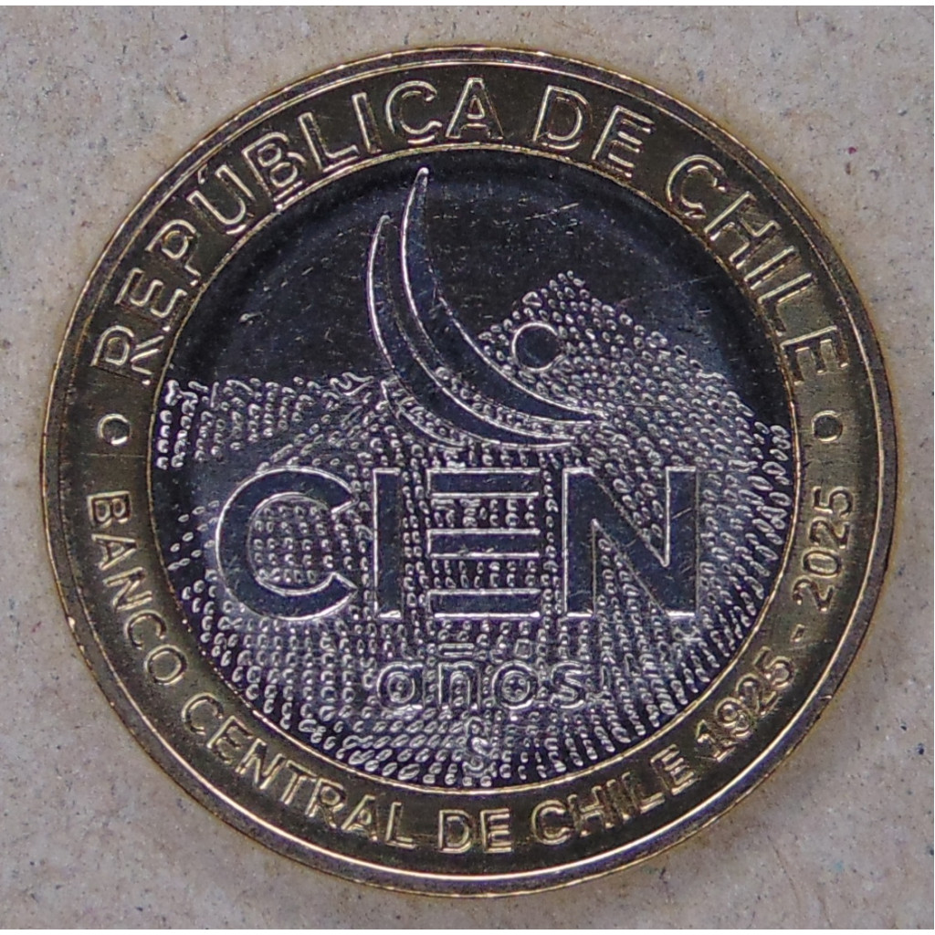 Чили 100 песо 2025 100 лет Центральному банку UNC