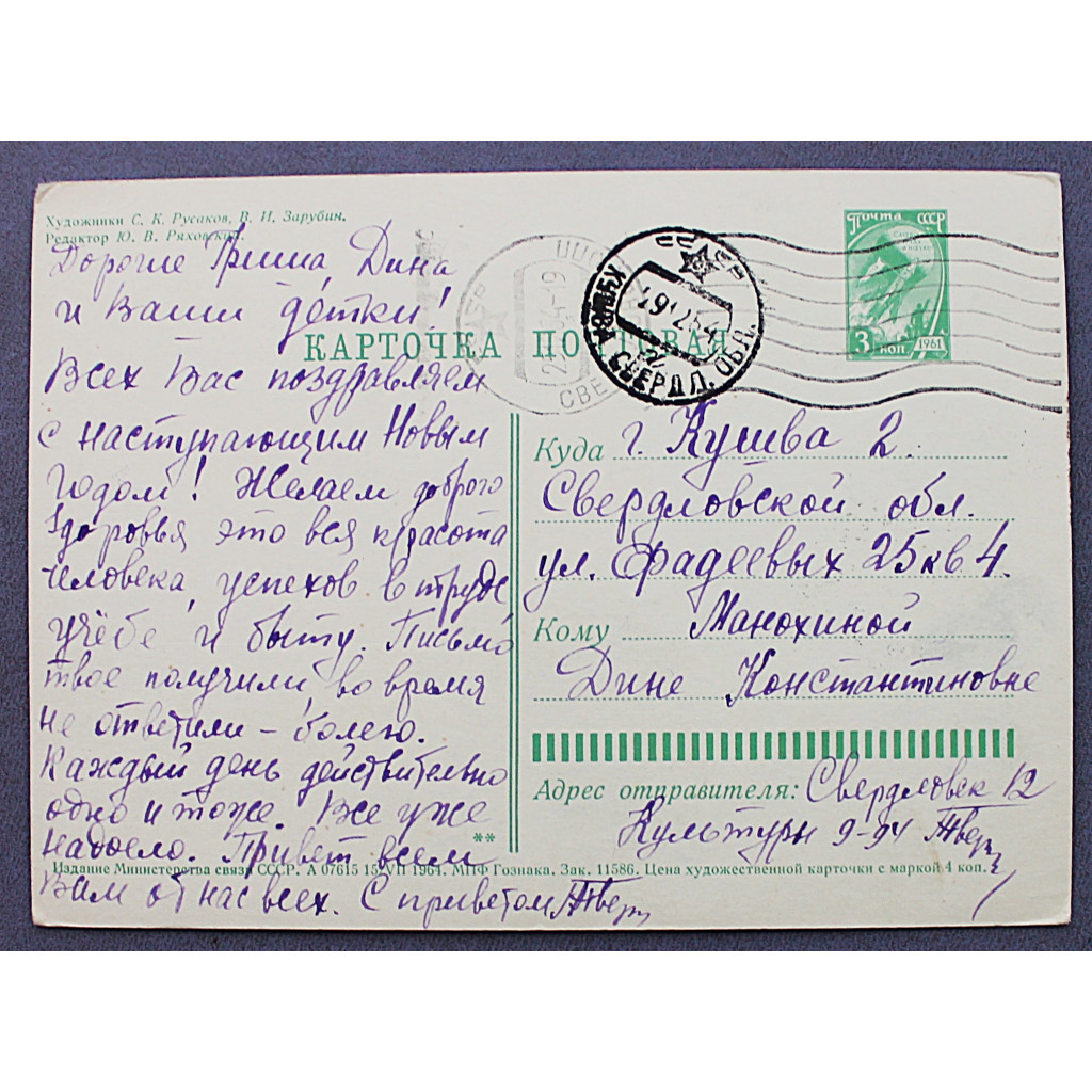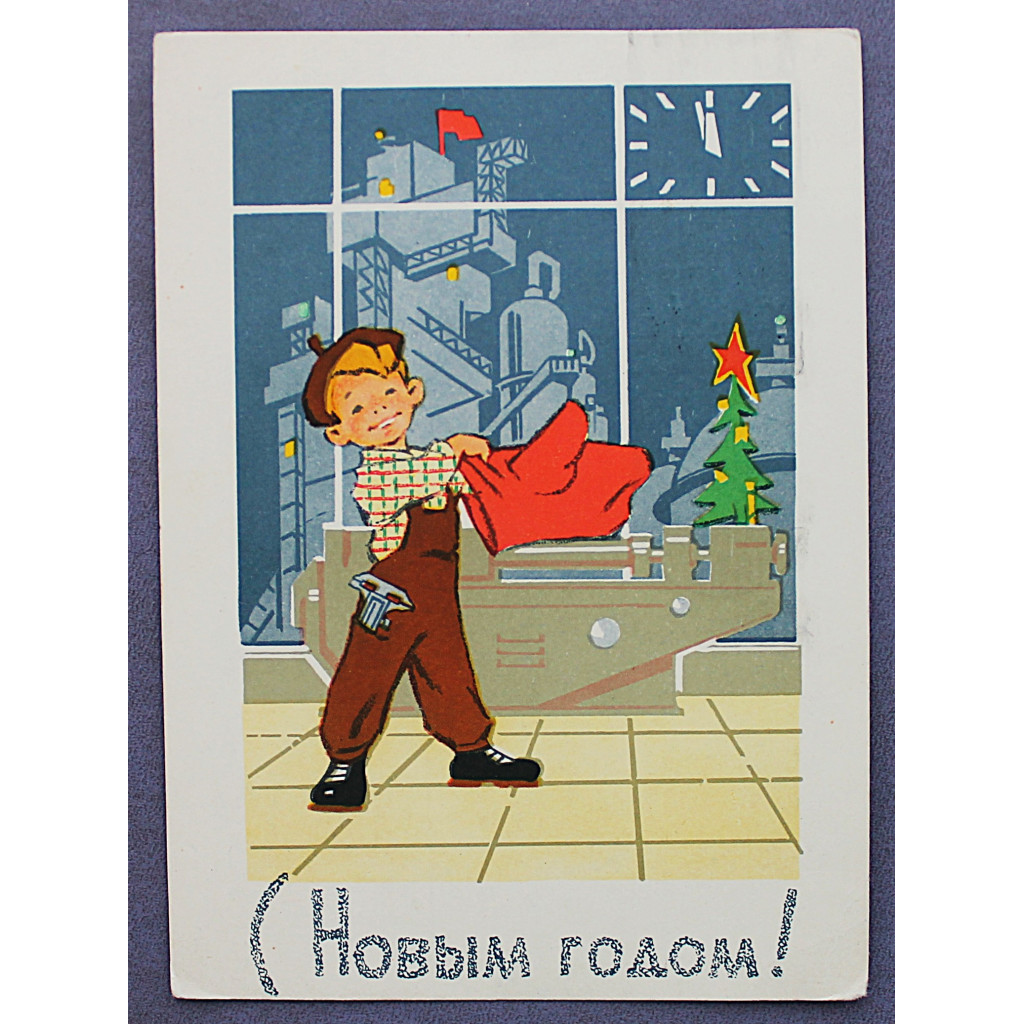 СССР почтовая открытка "С Новым годом!". Токарь (Мин связи, 1964) Художники: Русаков, Зарубин