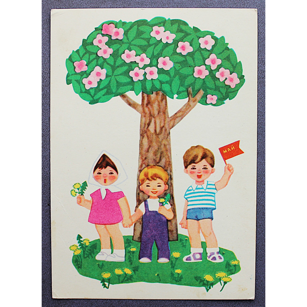 СССР почтовая открытка "1 МАЯ". Дети у дерева (Сов художник, 1965) Иоффе, Карташов
