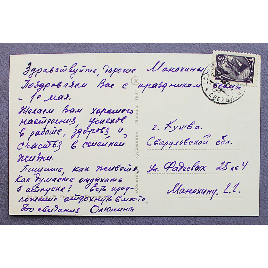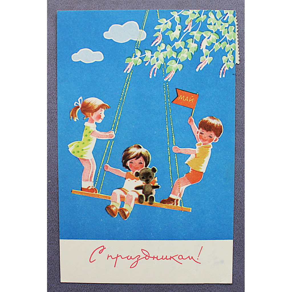 СССР почтовая открытка "1 МАЯ". Дети на качели (Сов художник, 1965) Иоффе, Карташов