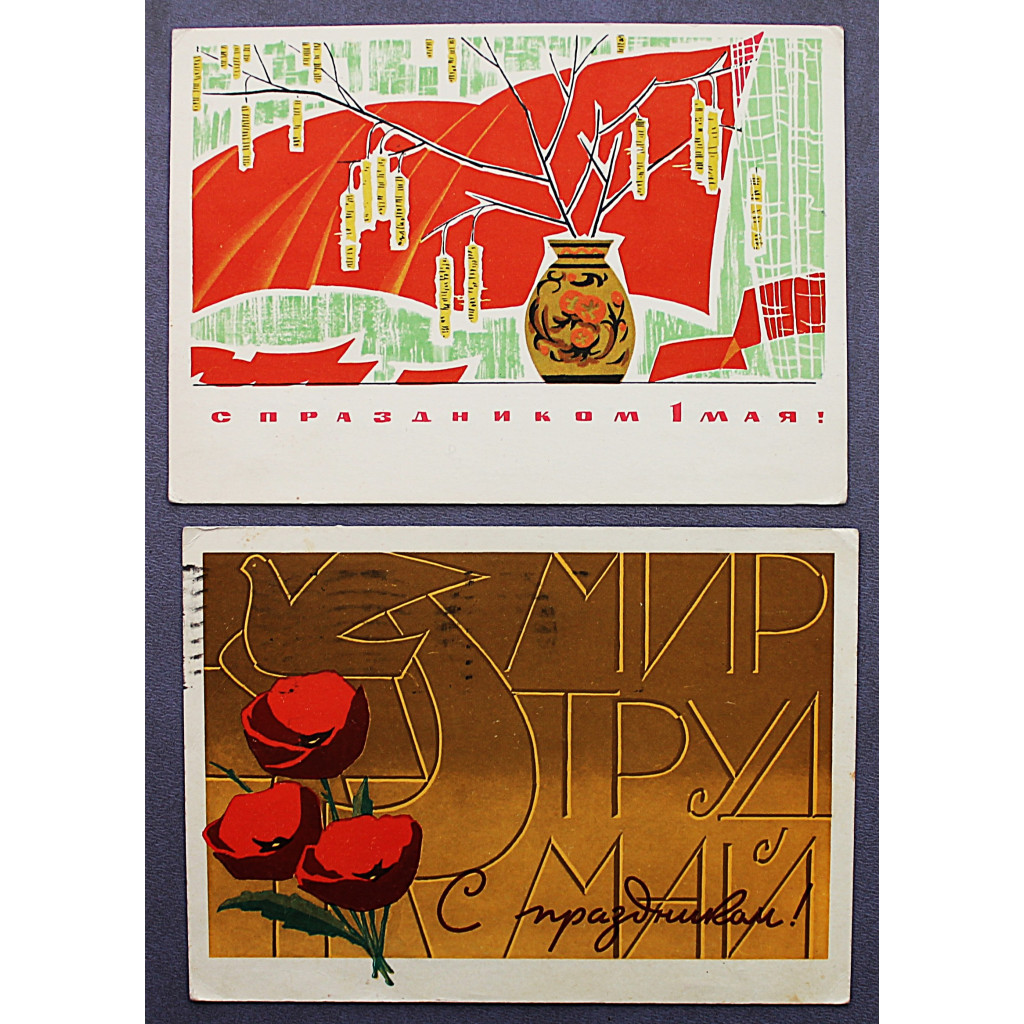 СССР пара почтовых открыток "1 МАЯ". Кузин и Чмаров (1968), Инговатов (1967)