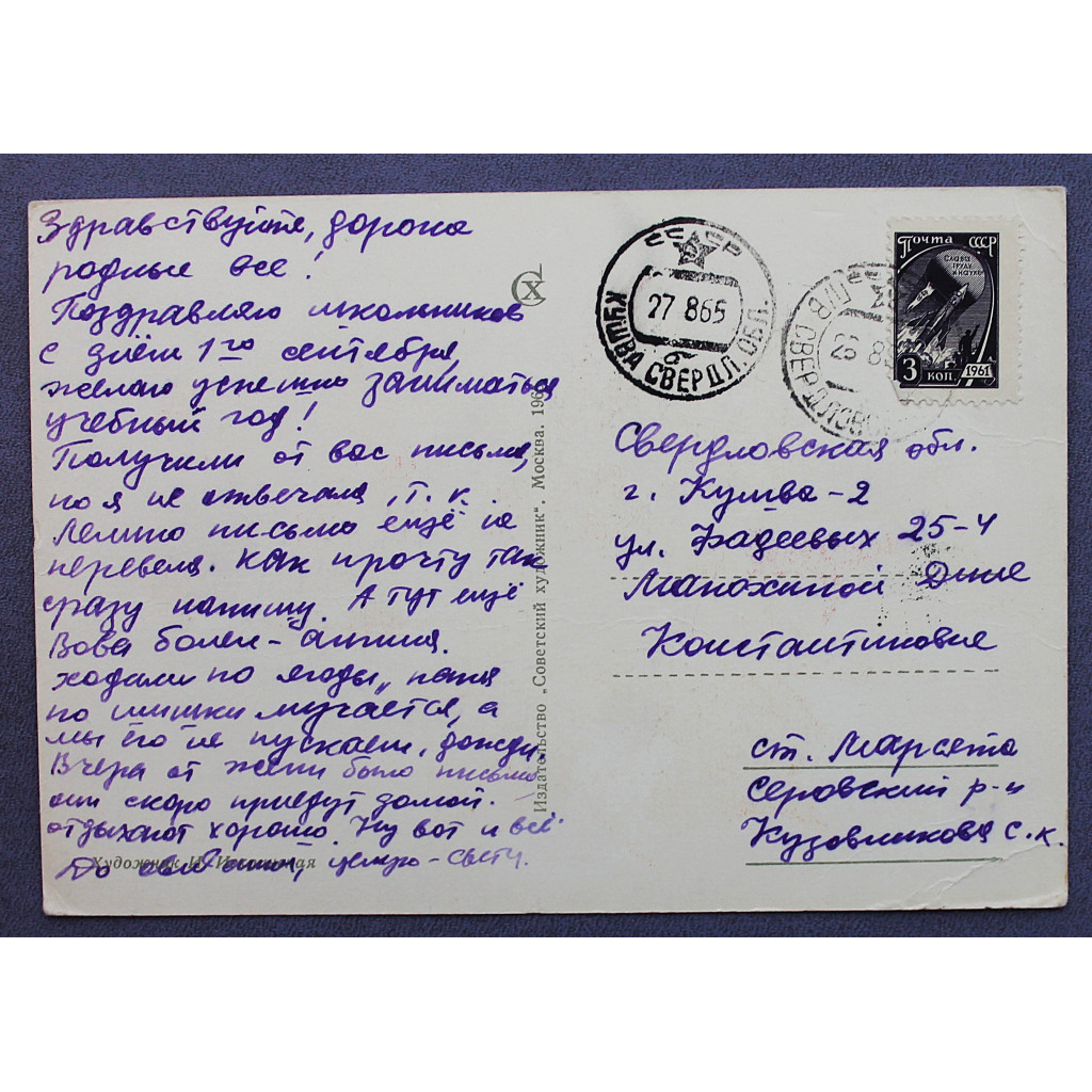 СССР почтовая открытка "1 сентября" (Сов художник, 1965) Искринская
