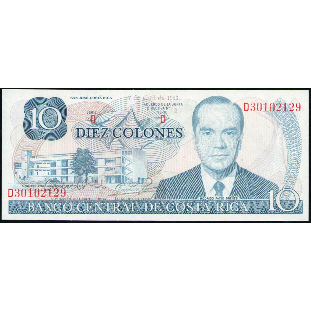 Коста-Рика 10 Колон 1983 год , UNC , Надпечатка