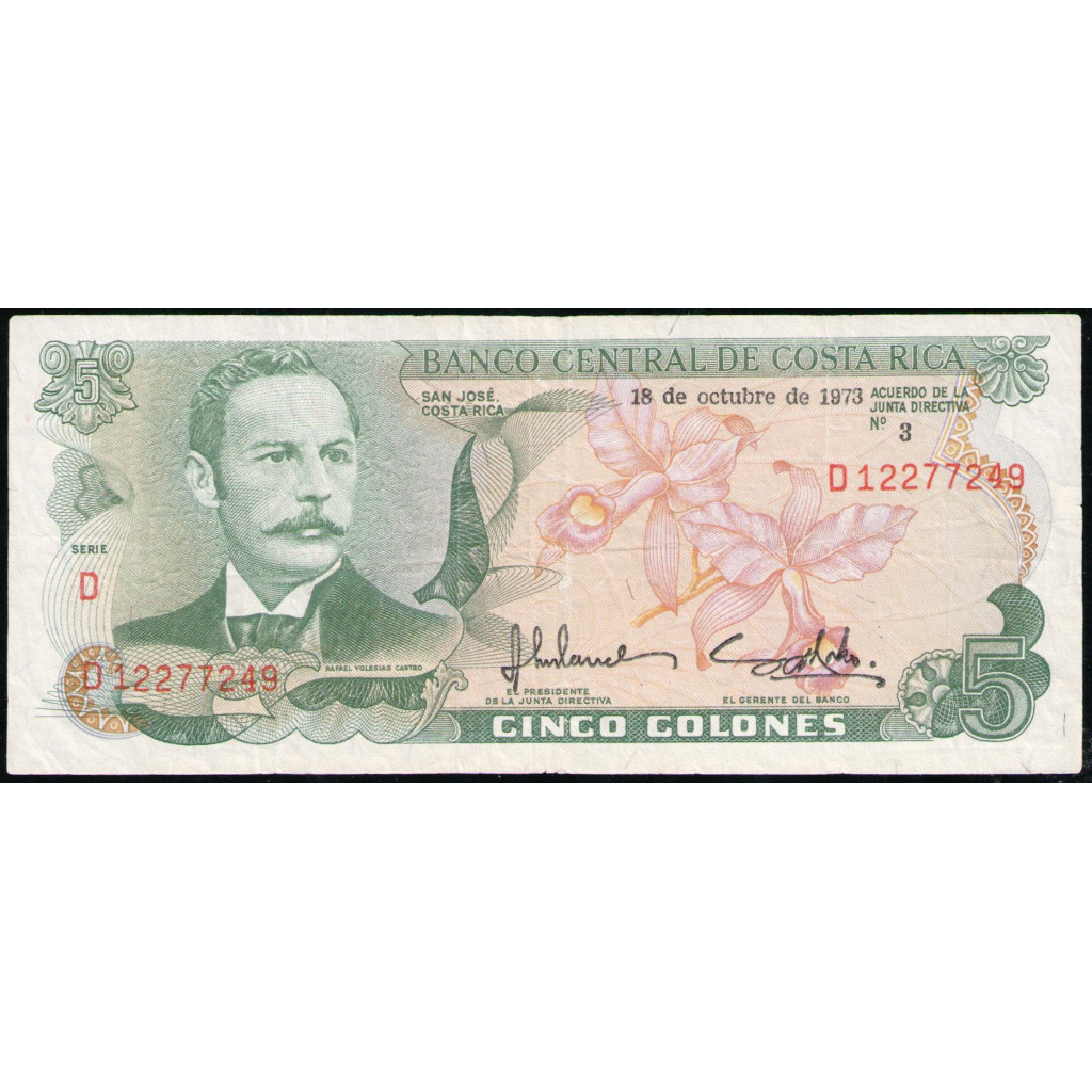 Коста-Рика 5 Колон 1973 год , Надпечатка