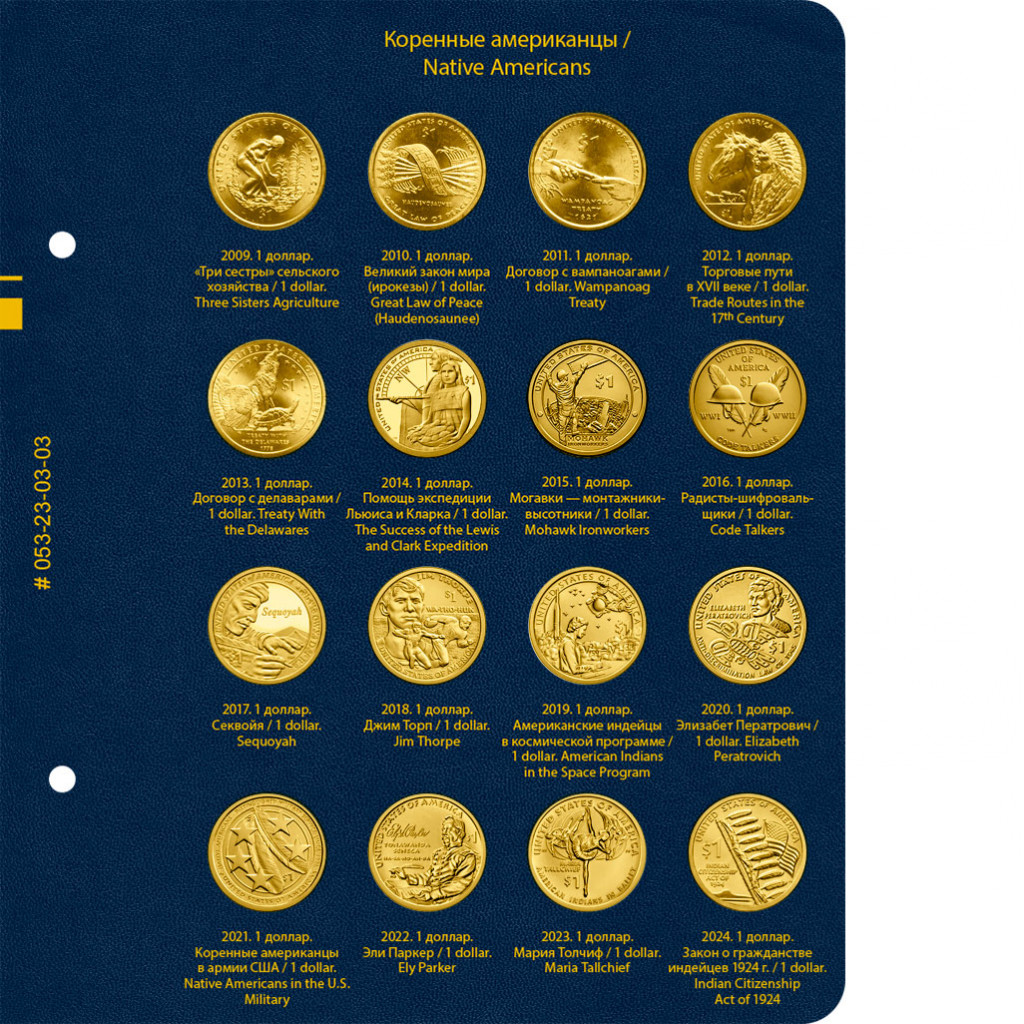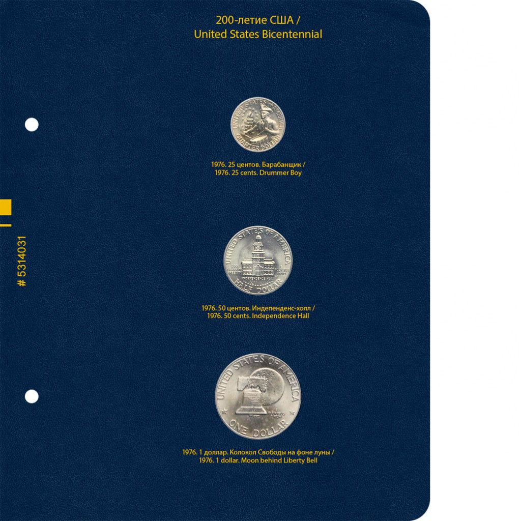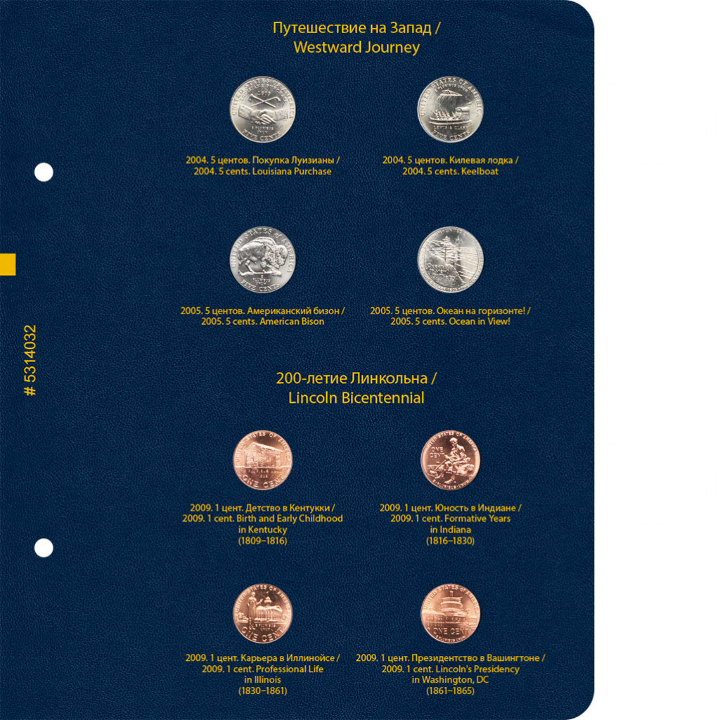 Альбом для хранения коллекции памятных монеты США из недрагоценных металлов, входящих в серии : «200-летие США», «Путешествие на запад», «200-летие Линкольна», «Коренные американцы». Таким образом в альбом не включены стандартные монеты США. Например, 5-центовые монеты 2006 года «Монтичелло», 1-центовые монеты 2009 года с изображением щита, и т.н. доллар с индианкой. Все эти монеты выпускались с одинаковым дизайном в течение продолжительного времени и памятными не являются.
