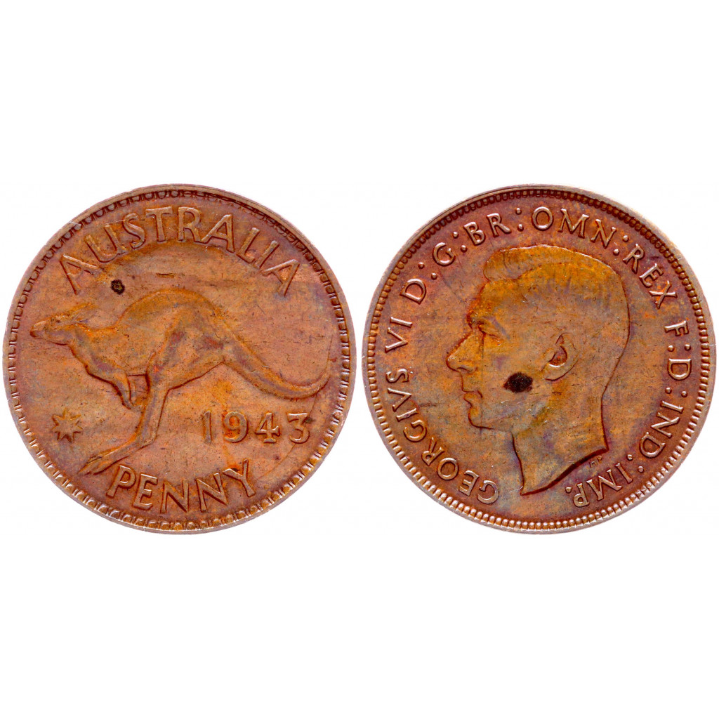 Австралия 1 Пенни 1943 год AUNC КМ# 36 Кенгуру Георг VI