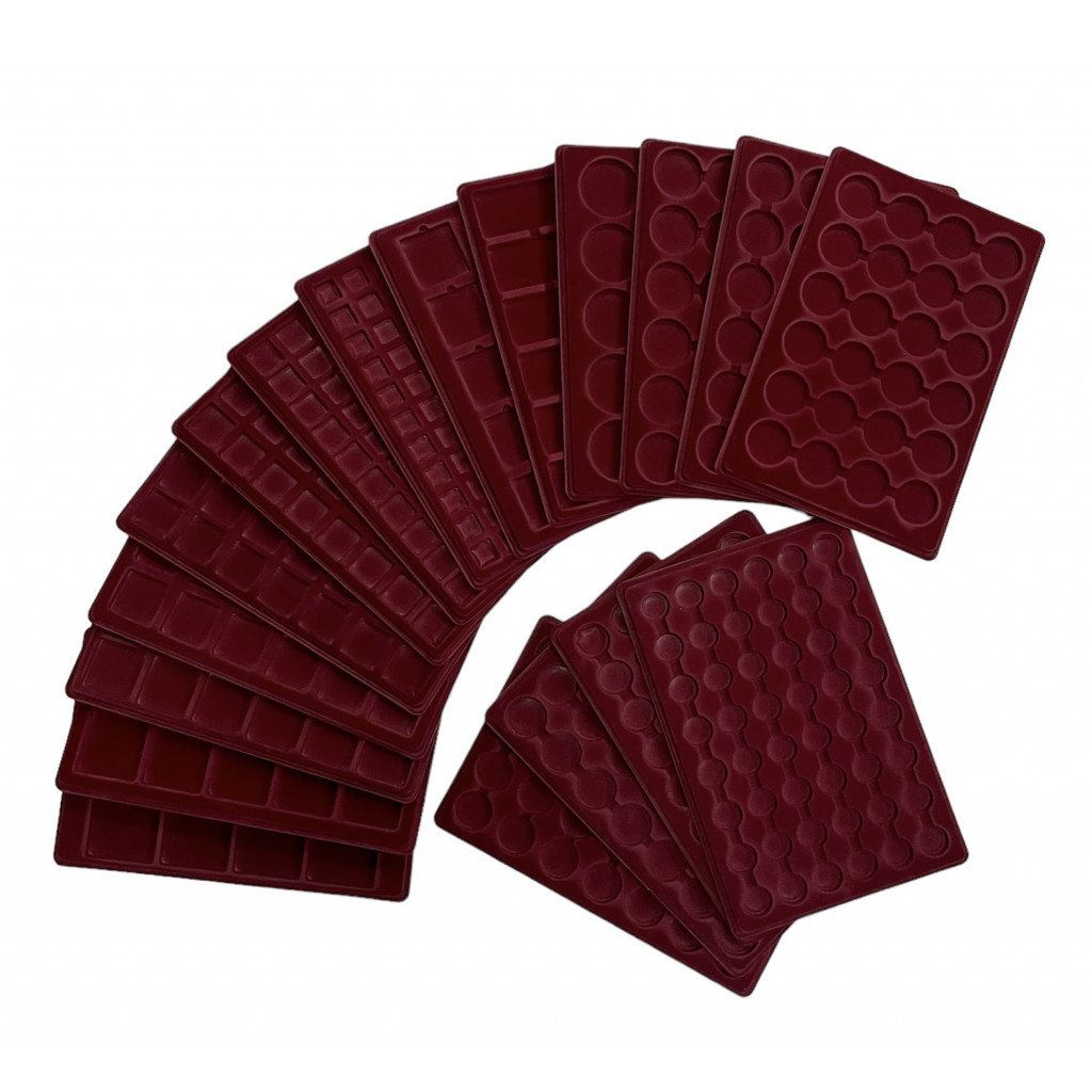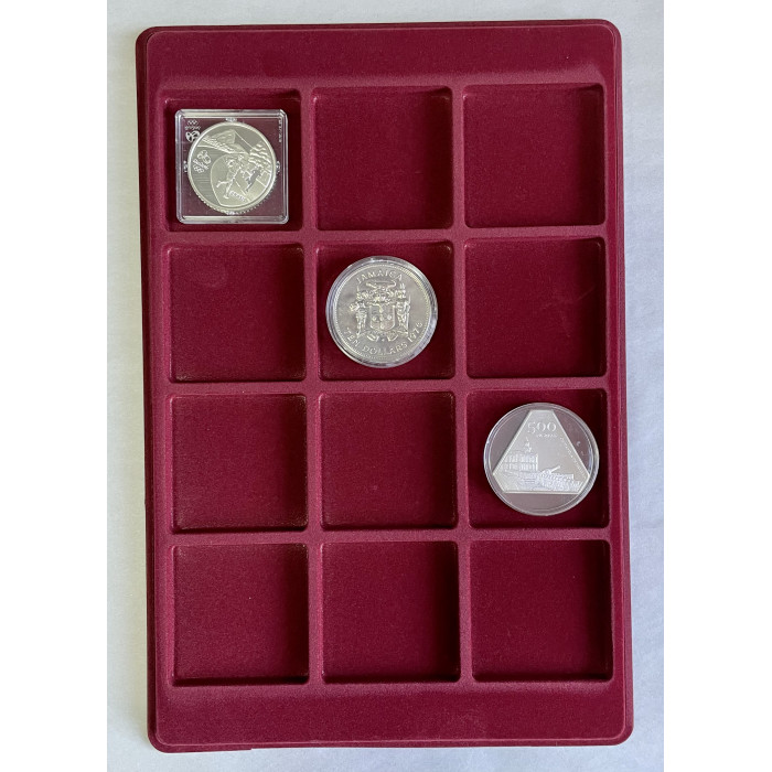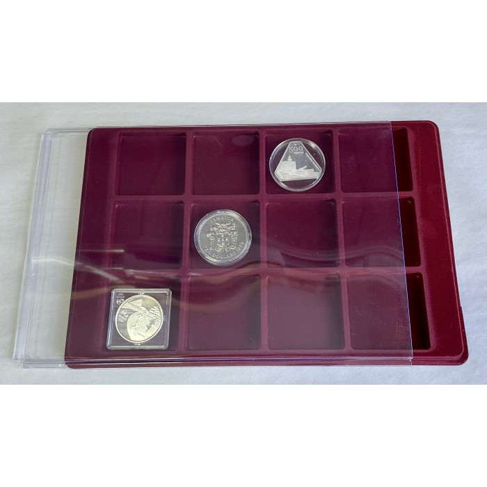 Планшет для монет (#17) Бархатный с прозрачной крышкой на 12 квадратных ячеек 63 х 63 мм